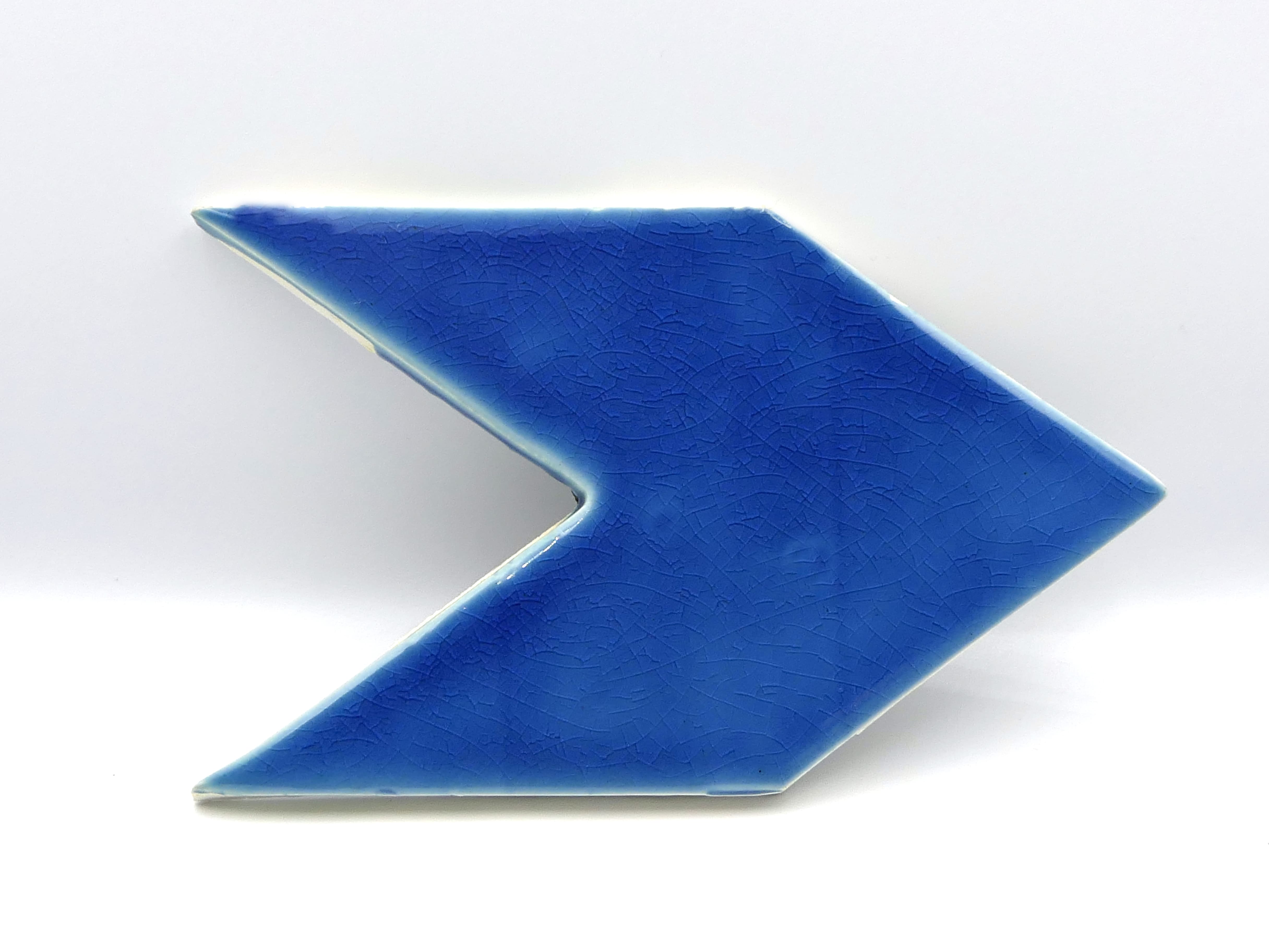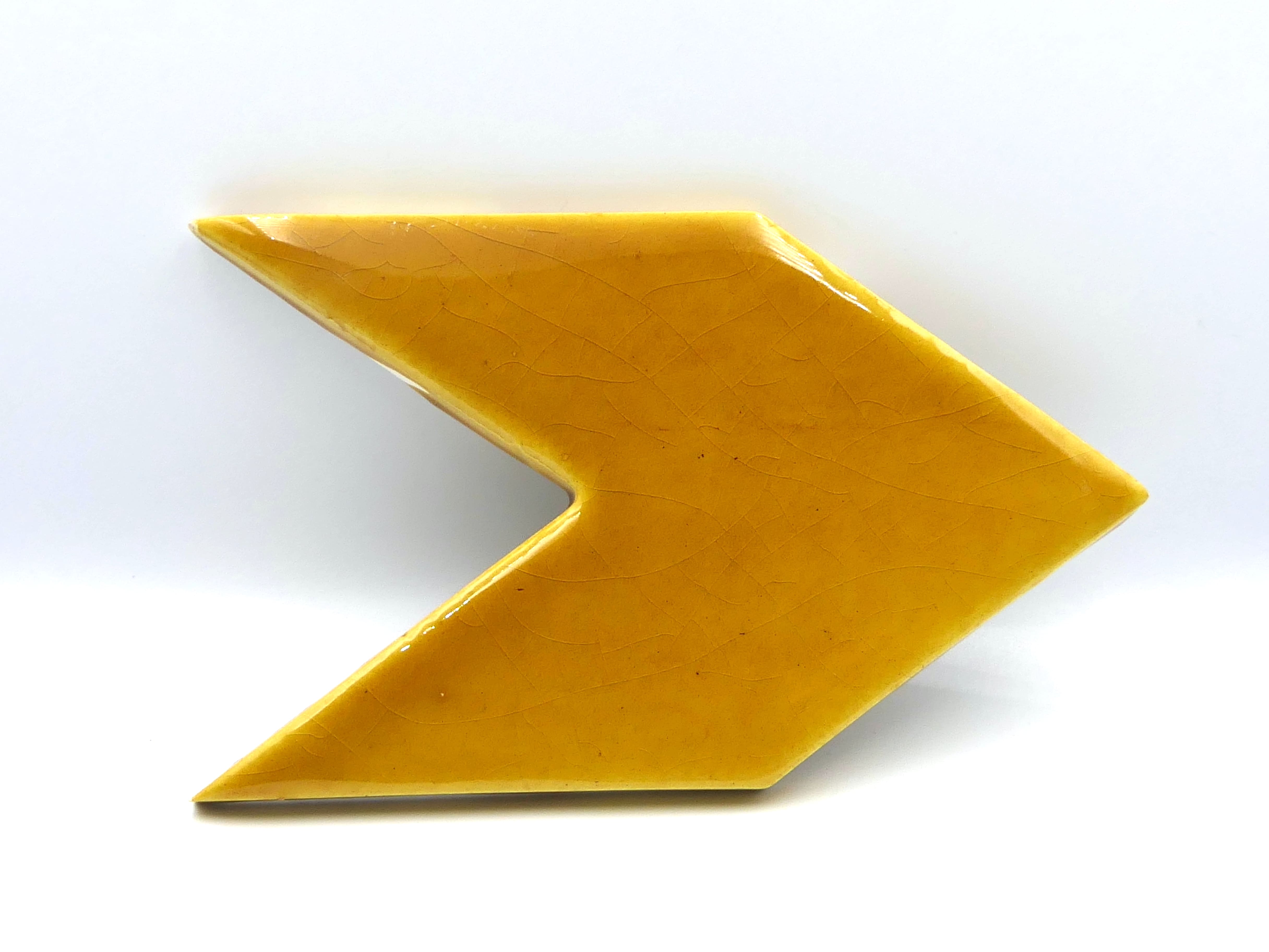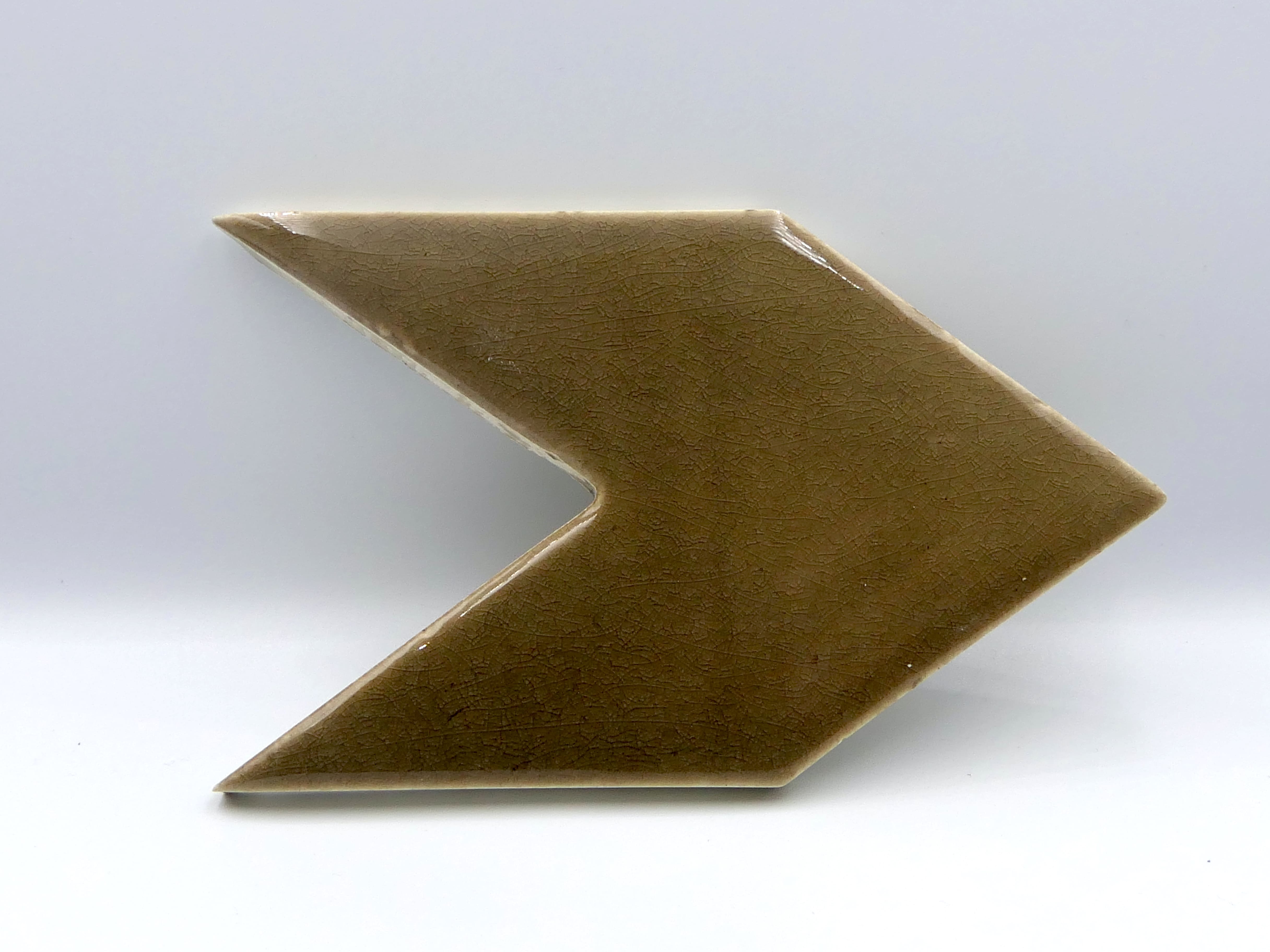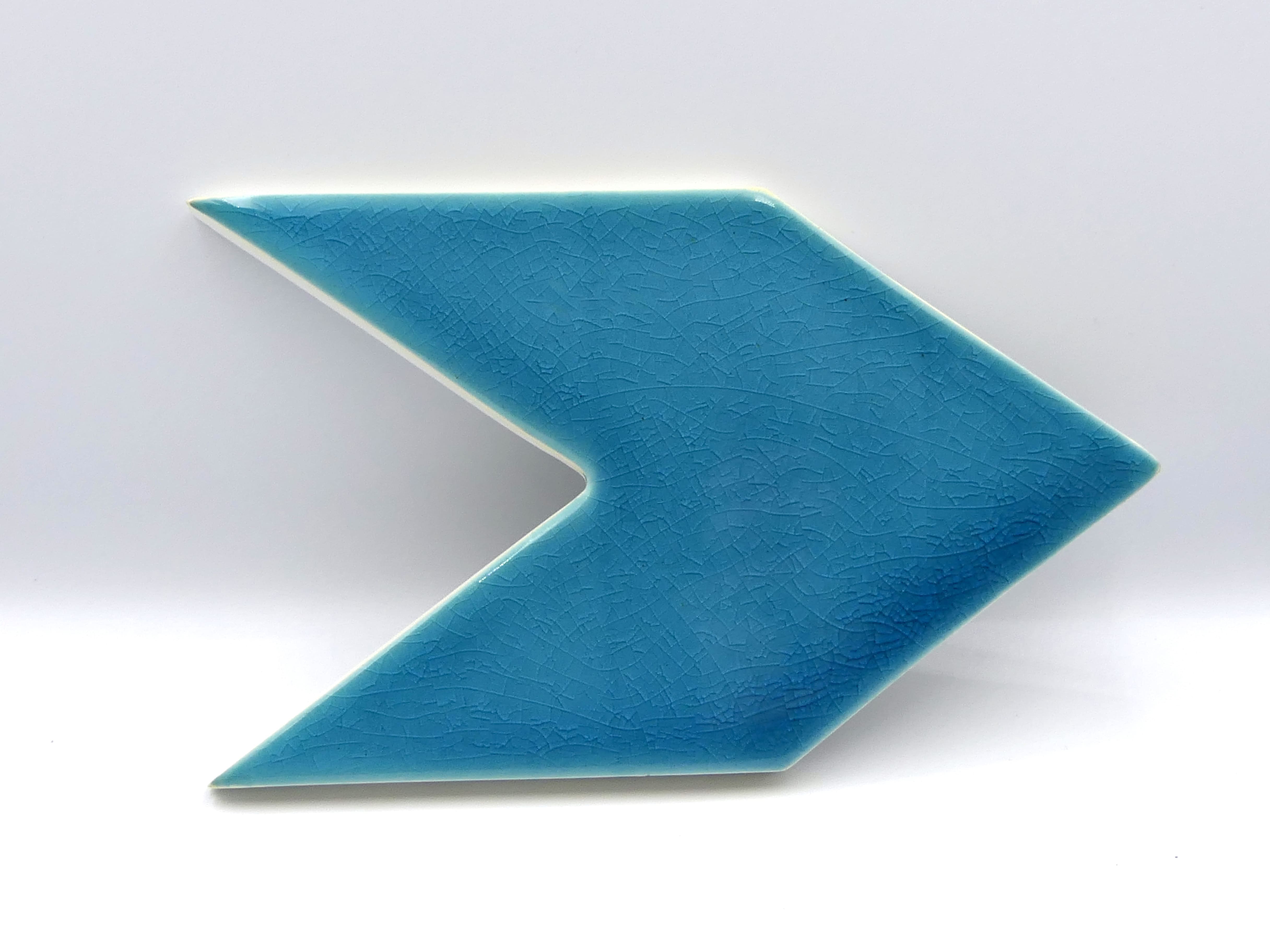 Azulejo de cerámica hecho y pintado a mano en forma de flecha. Disponible en varios colores y totalmente personalizable.