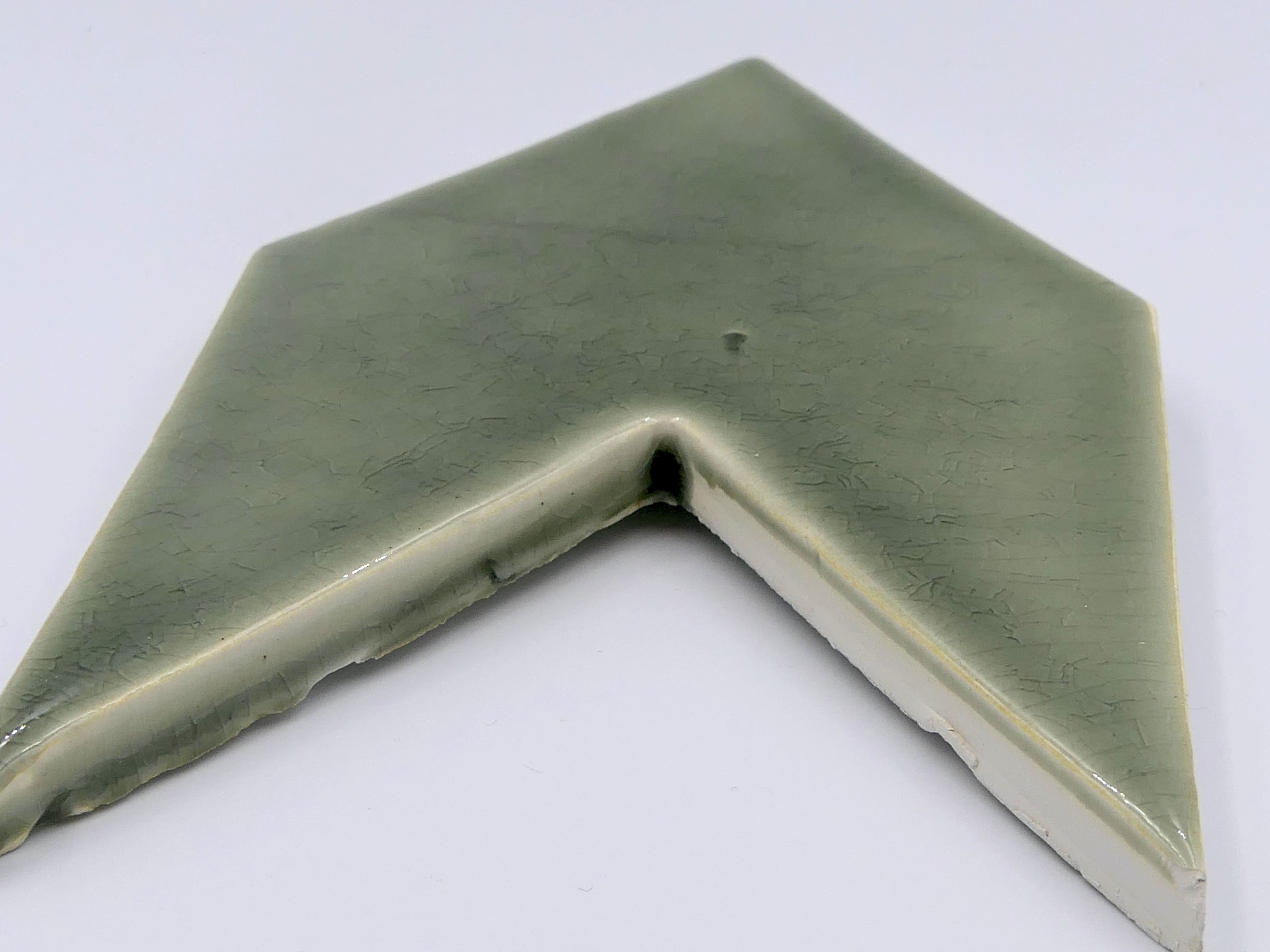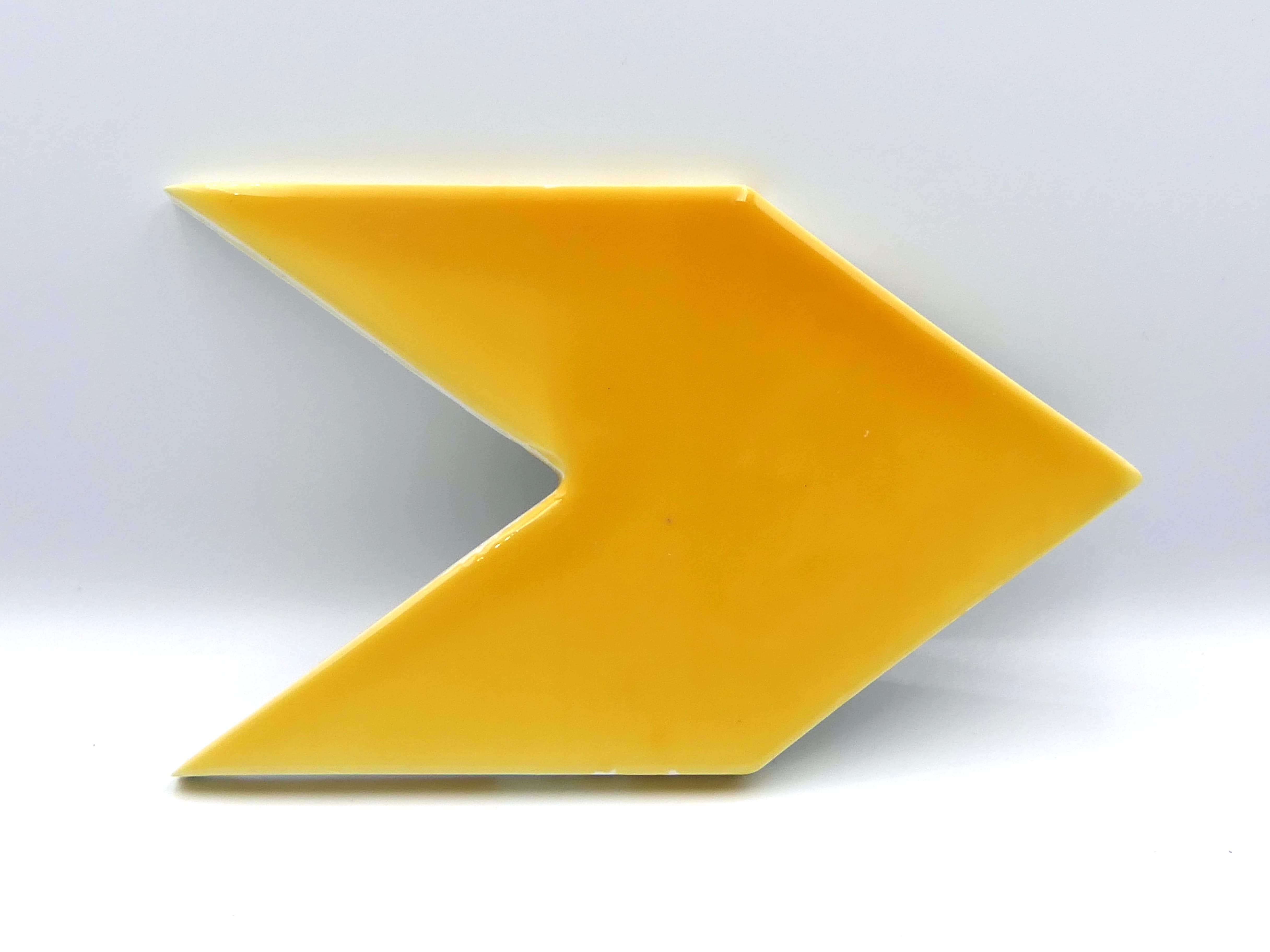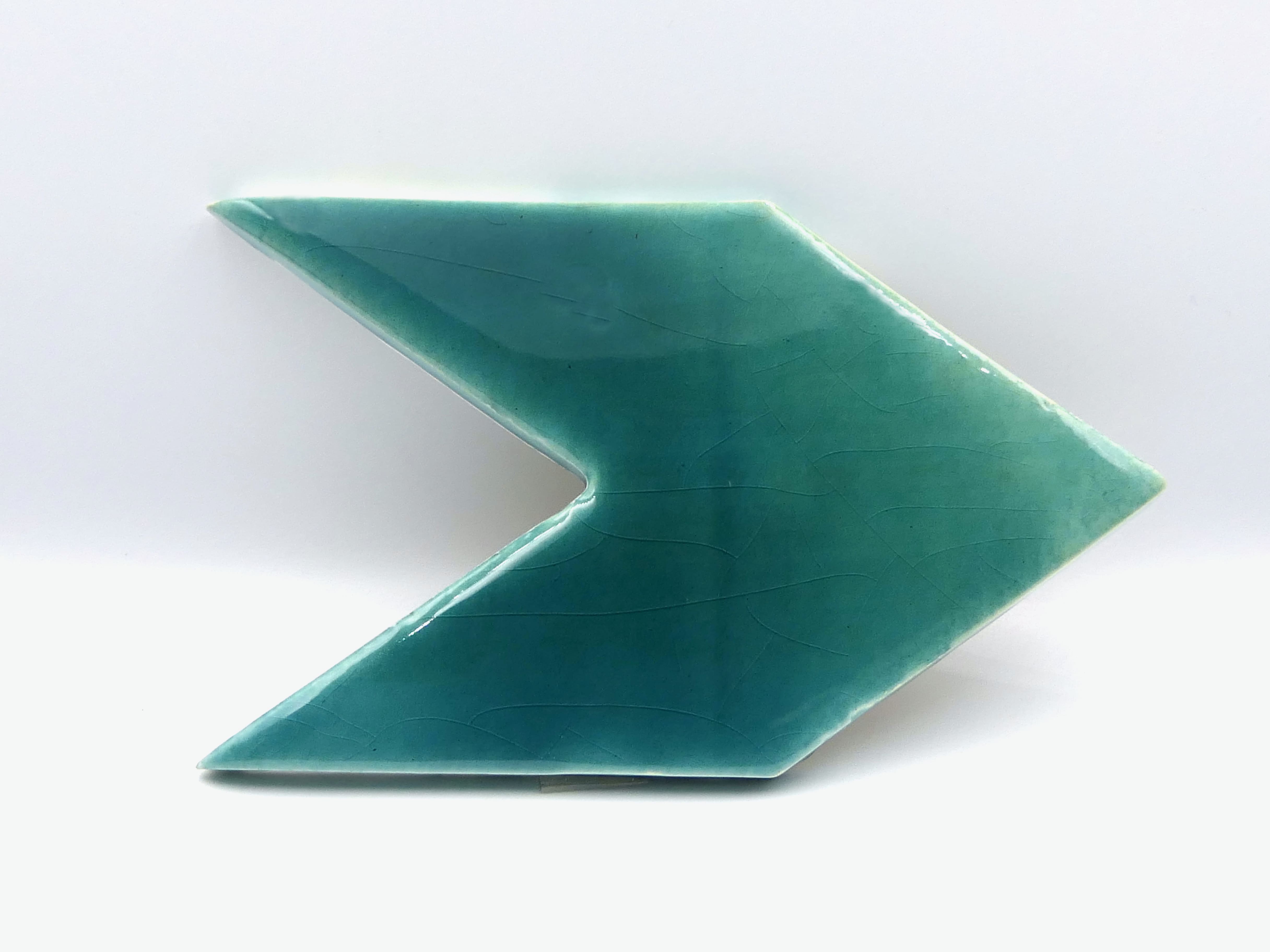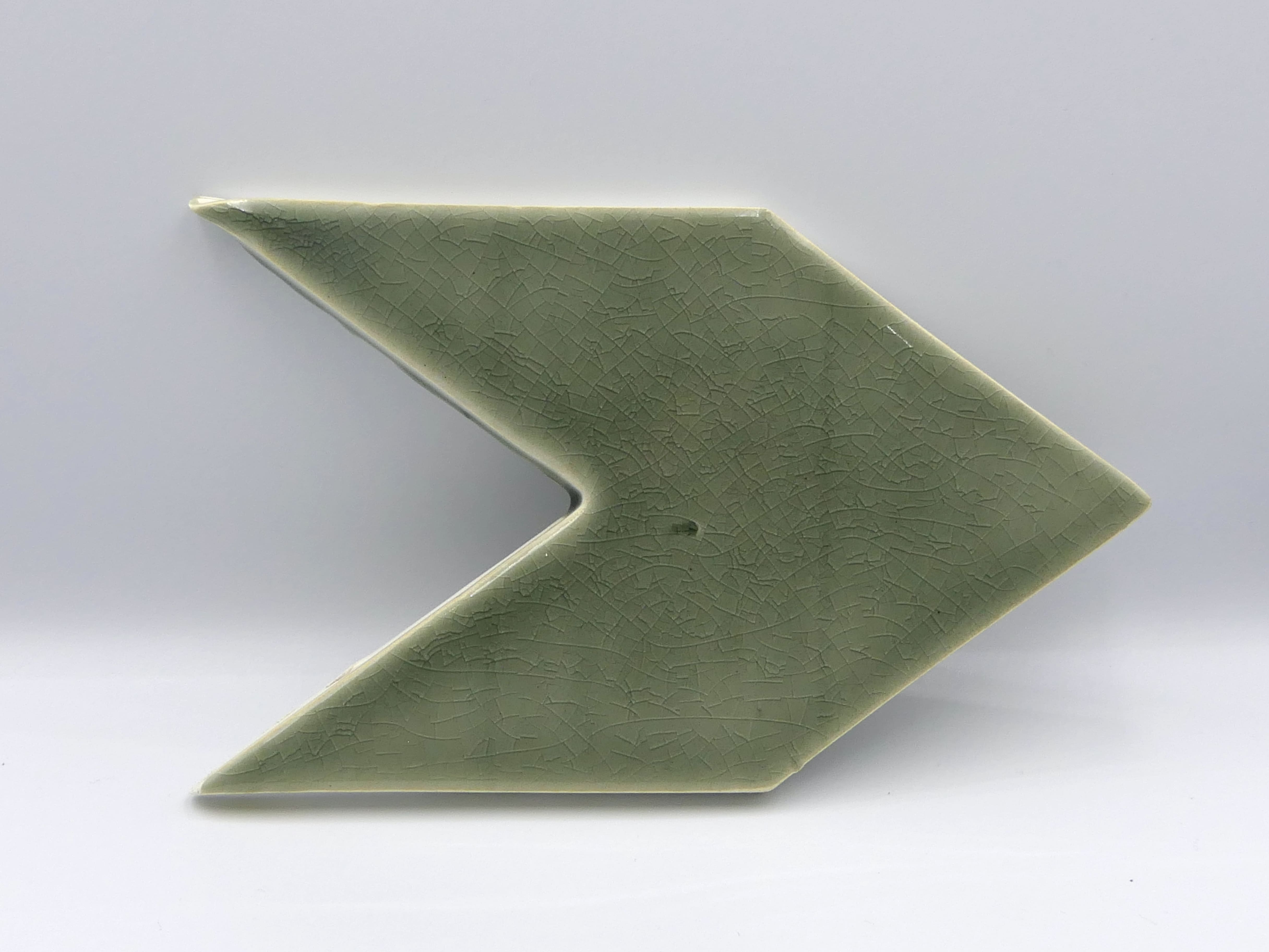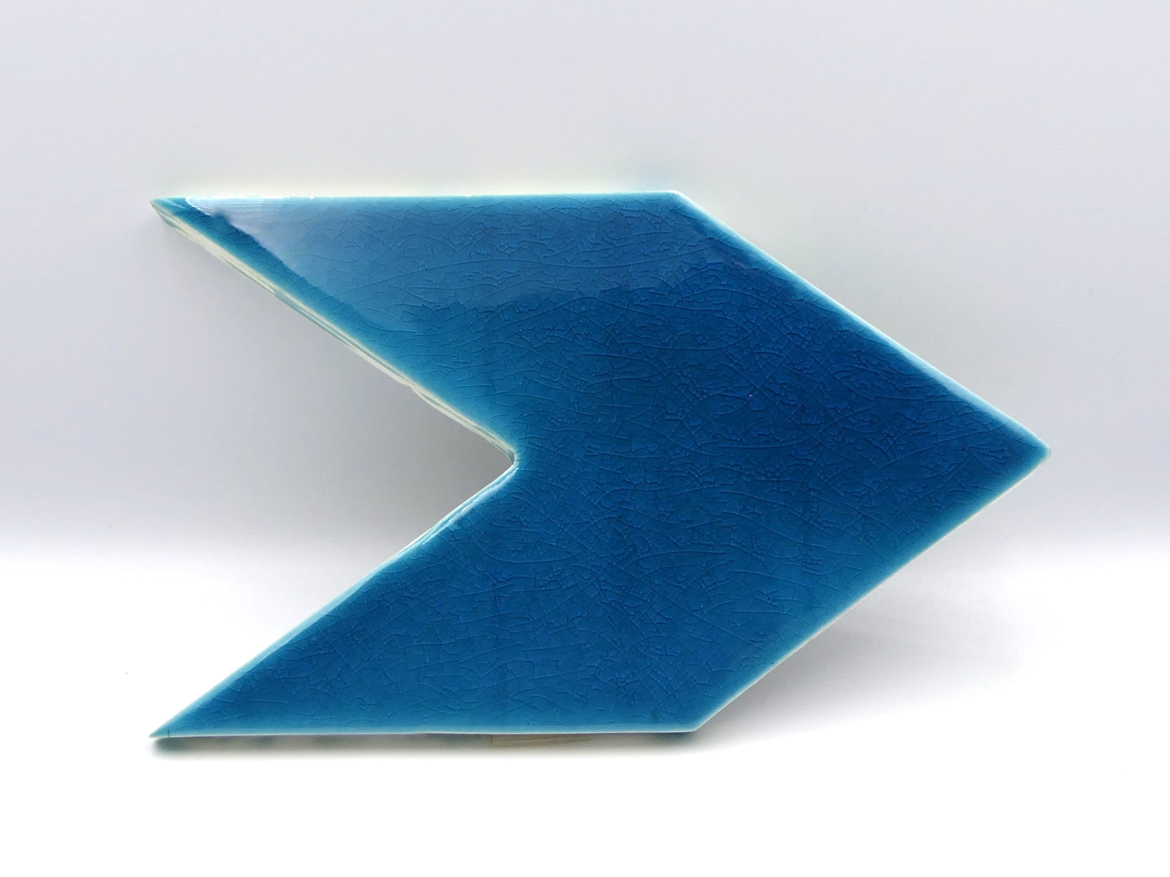 Azulejo de cerámica hecho y pintado a mano en forma de flecha. Disponible en varios colores y totalmente personalizable.