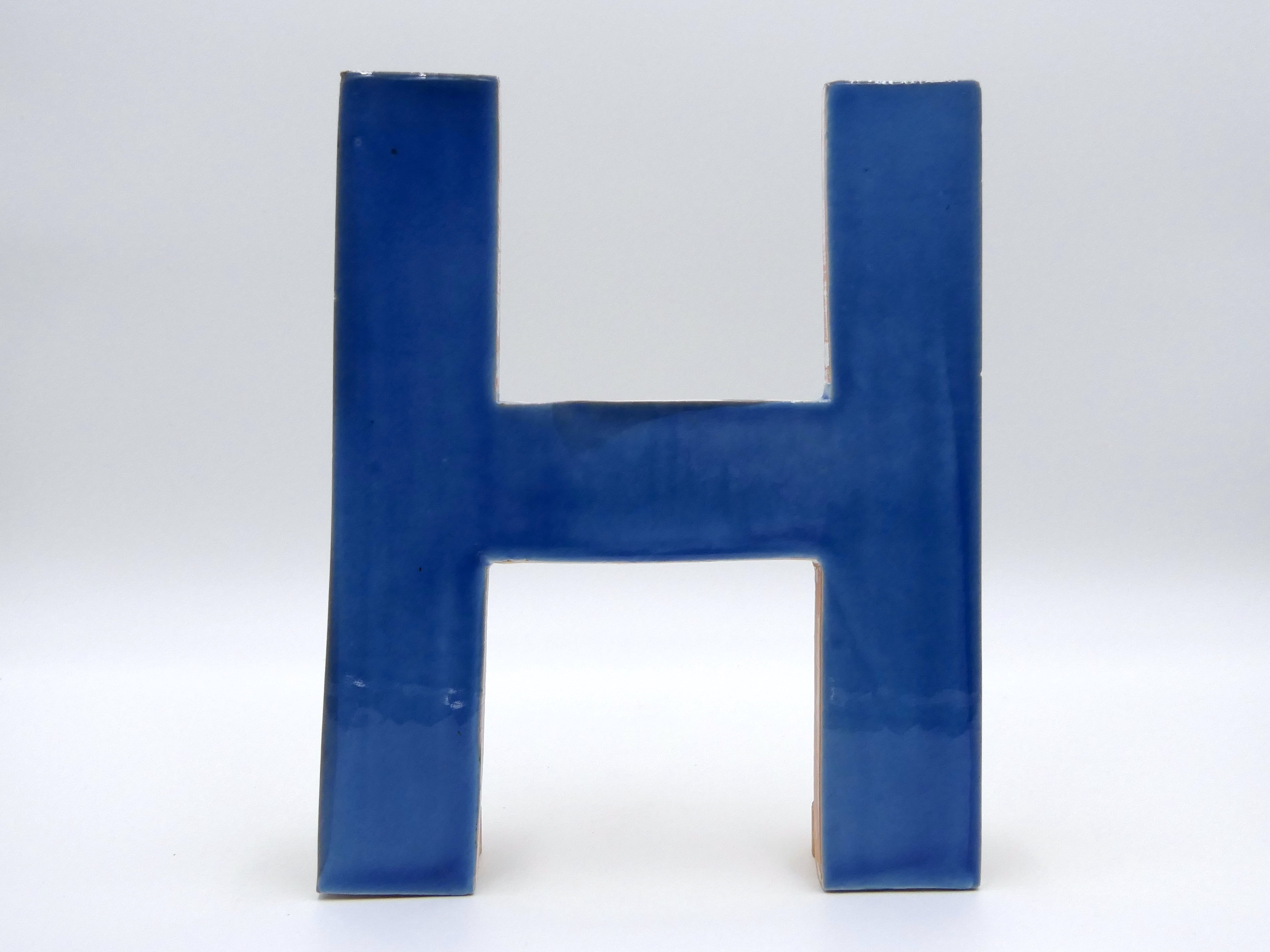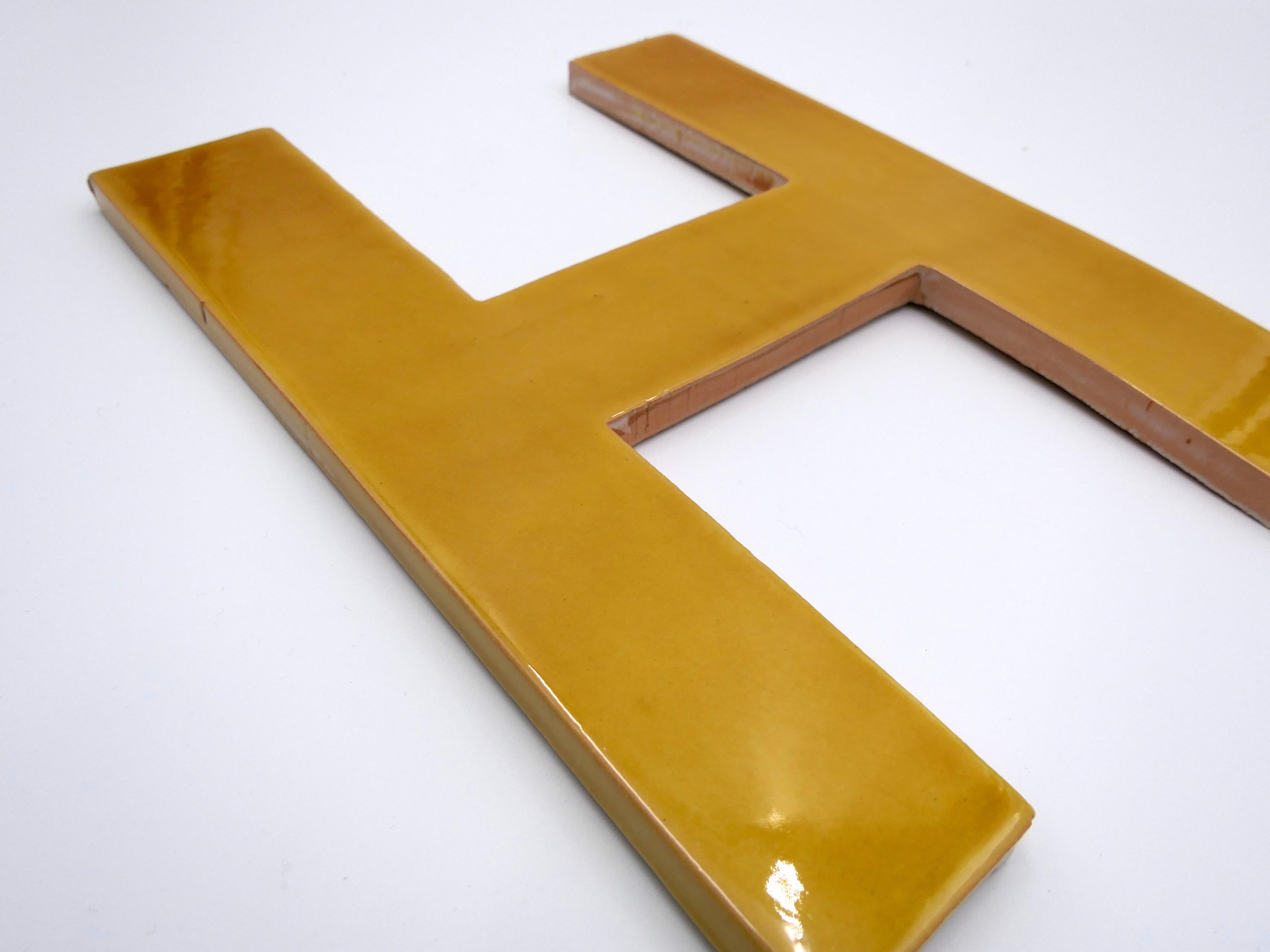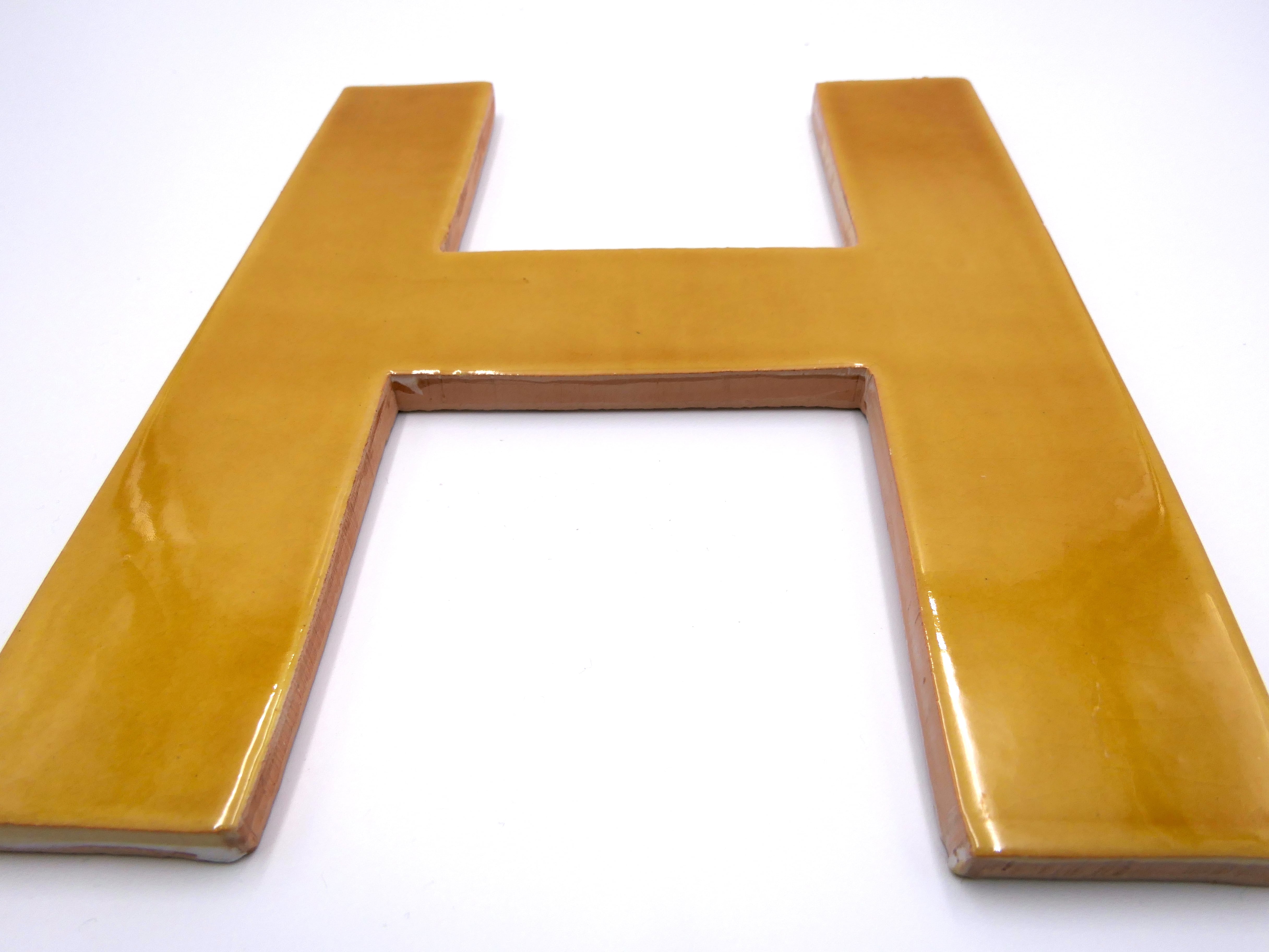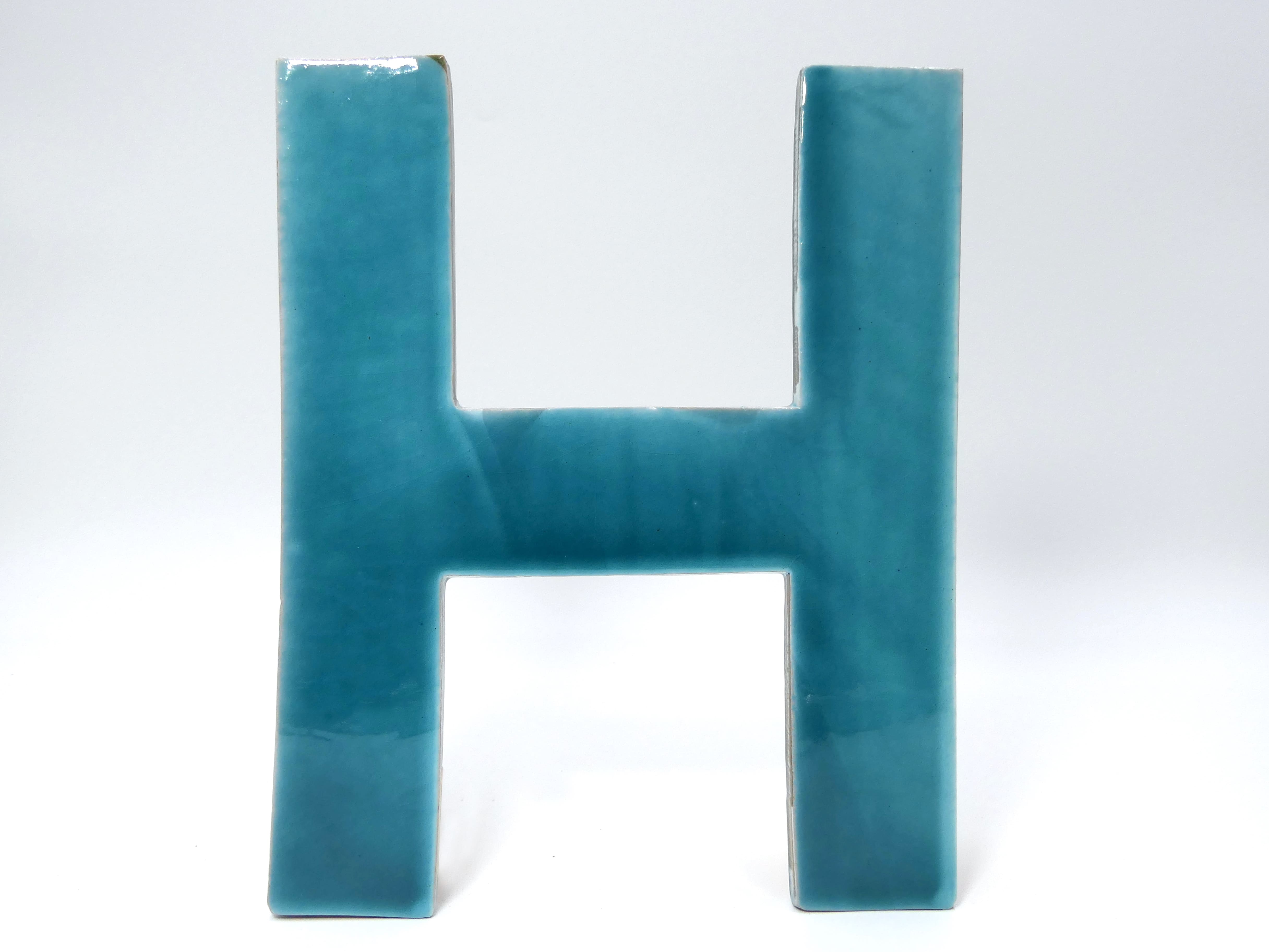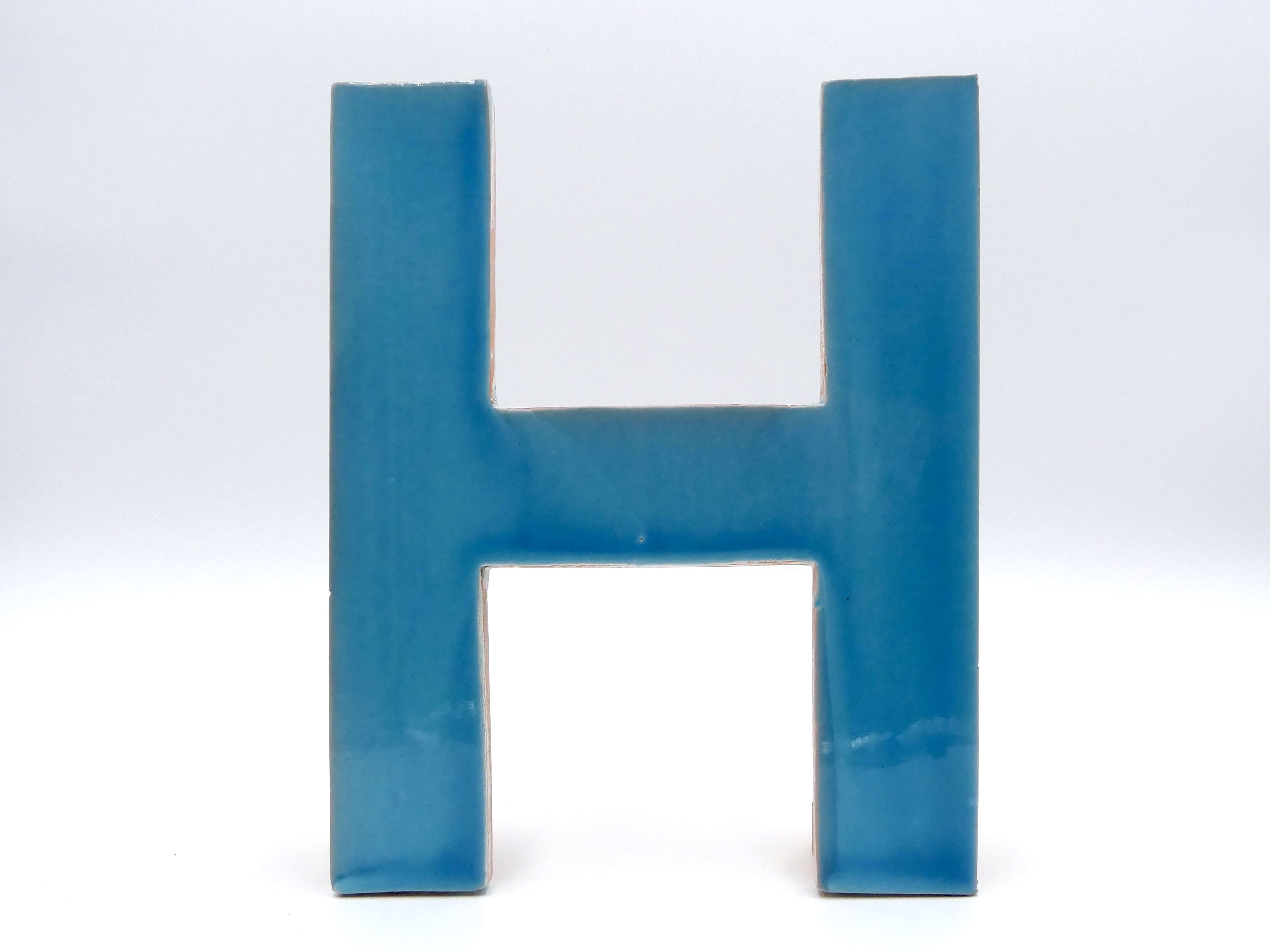 Azulejo de cerámica hecho y pintado a mano en forma de hache. Disponible en varios colores y totalmente personalizable.