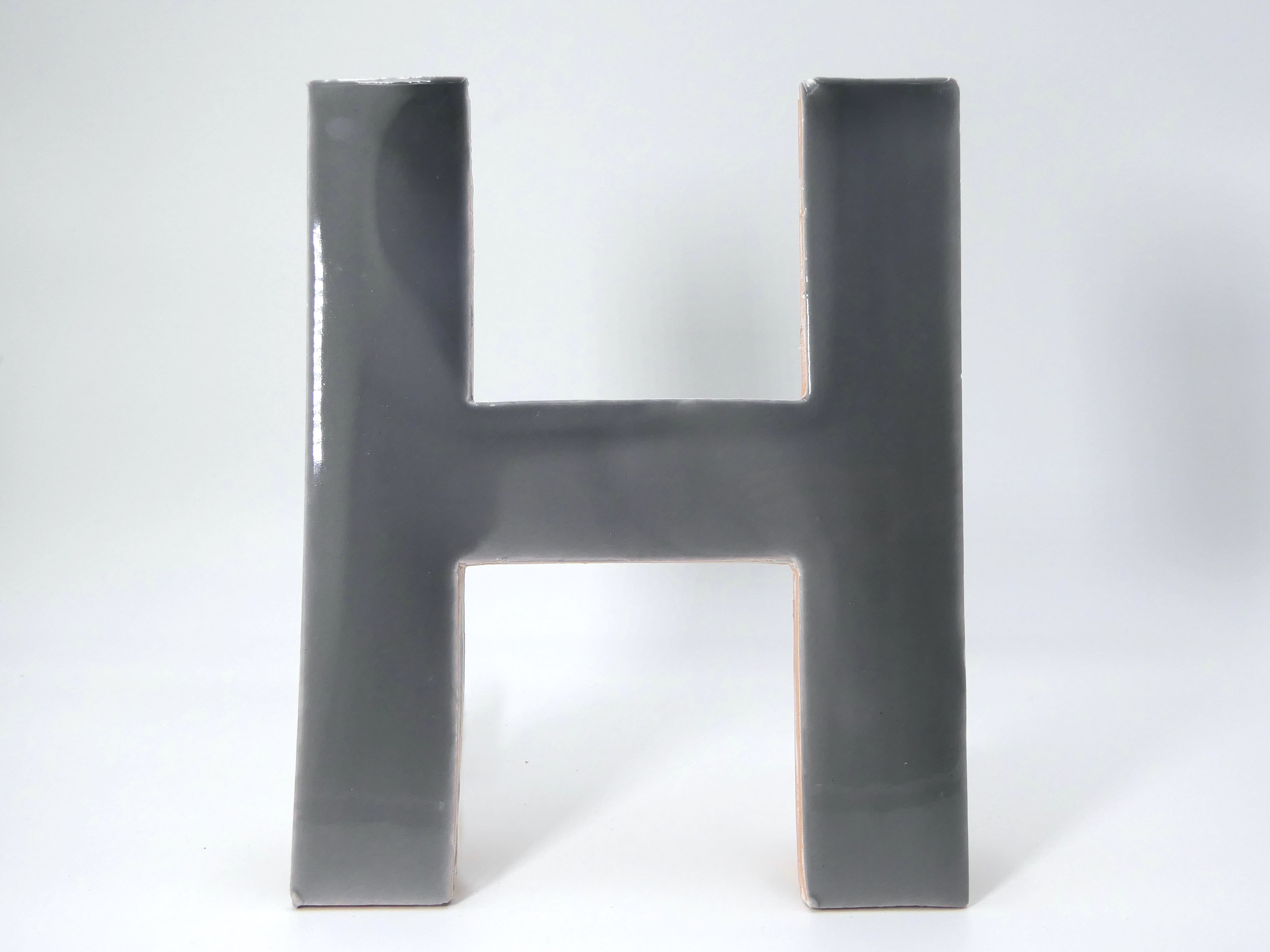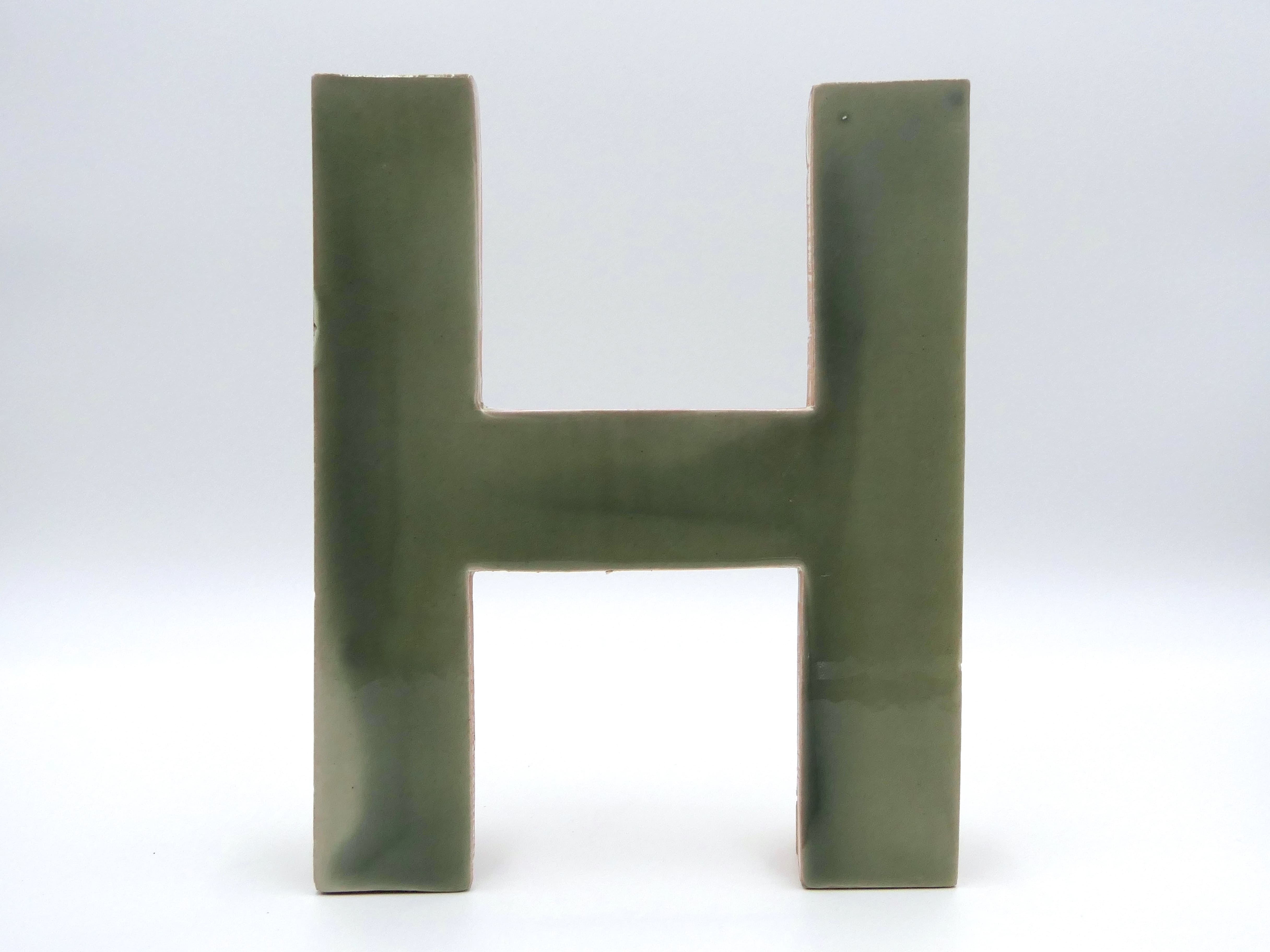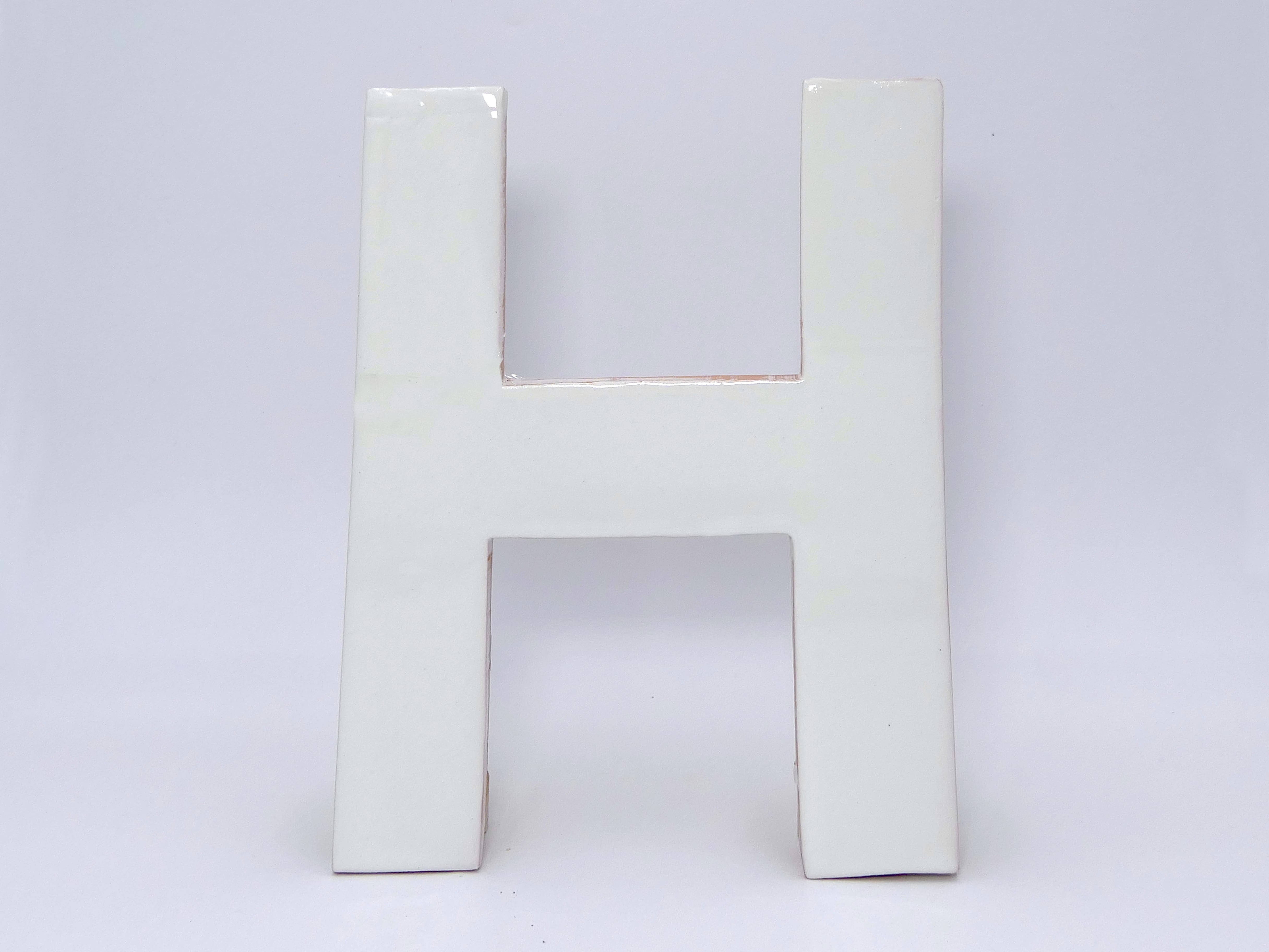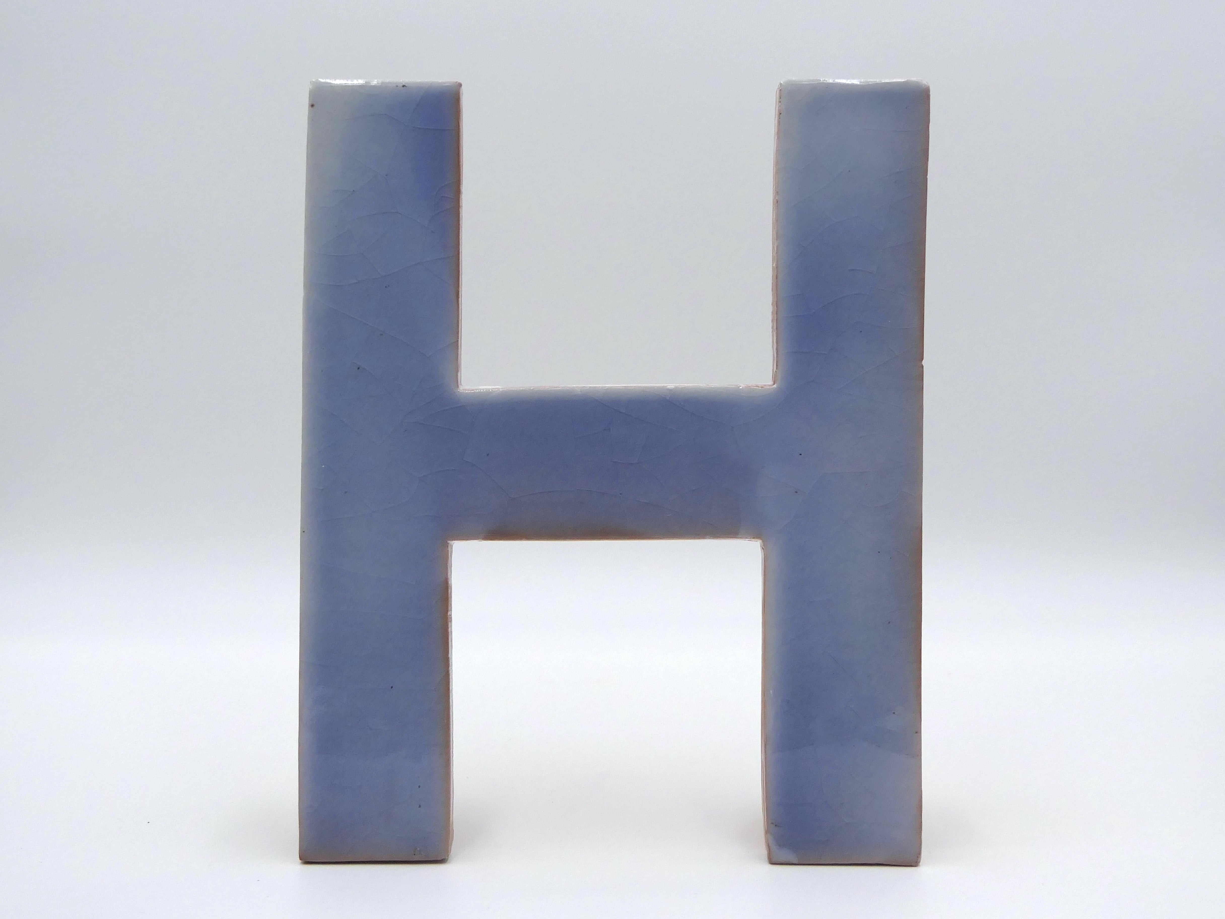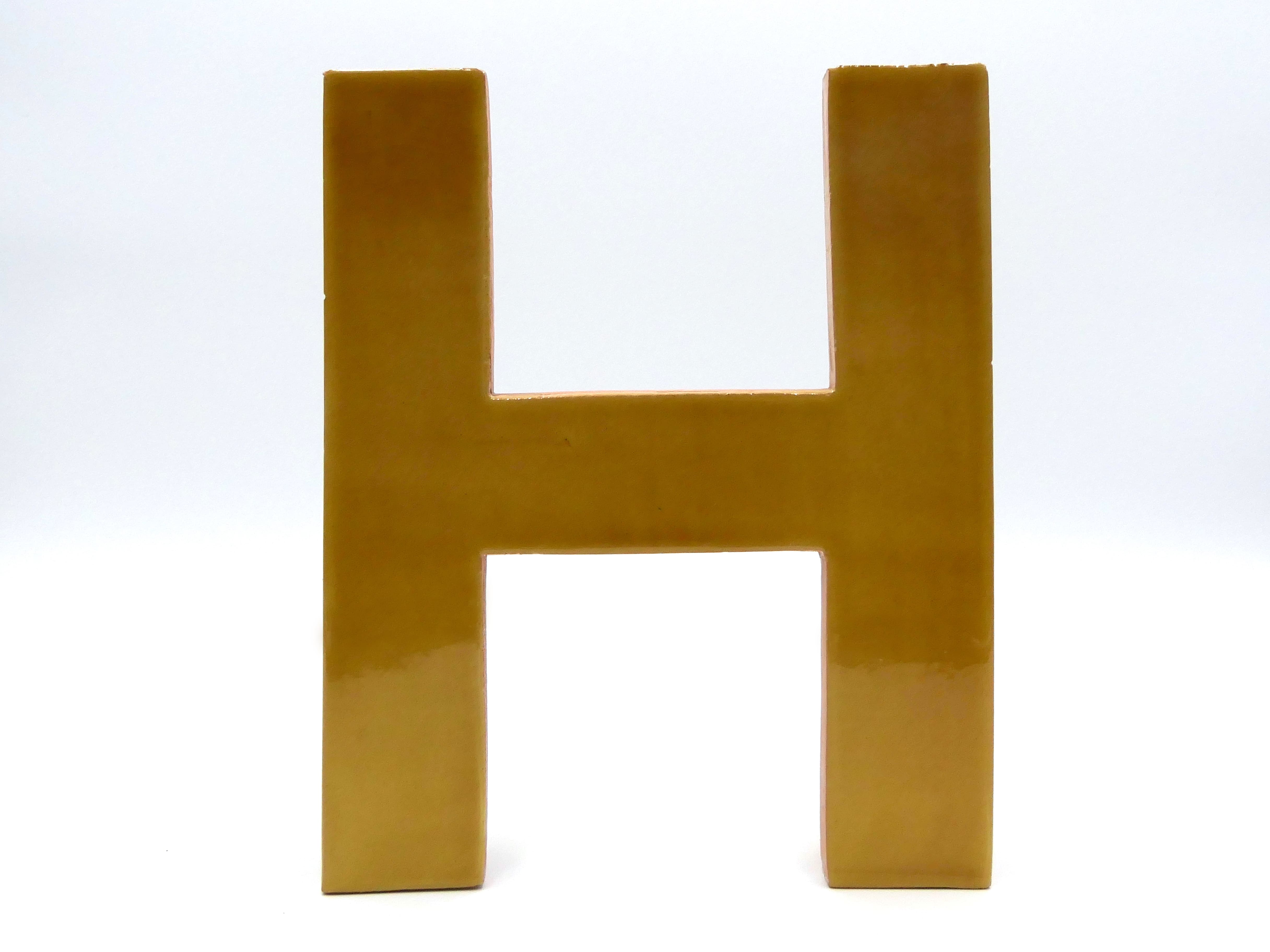 Azulejo de cerámica hecho y pintado a mano en forma de hache. Disponible en varios colores y totalmente personalizable.