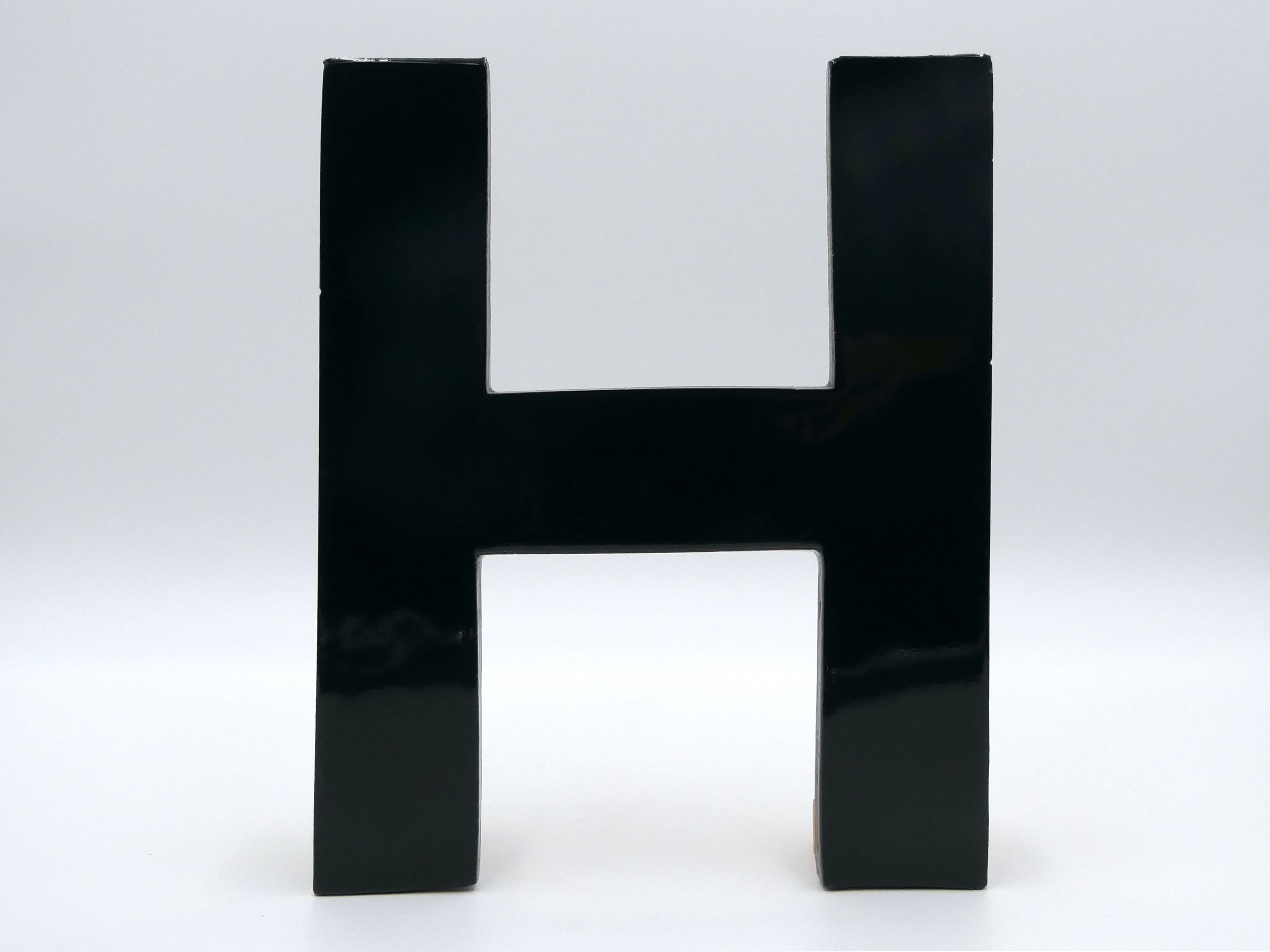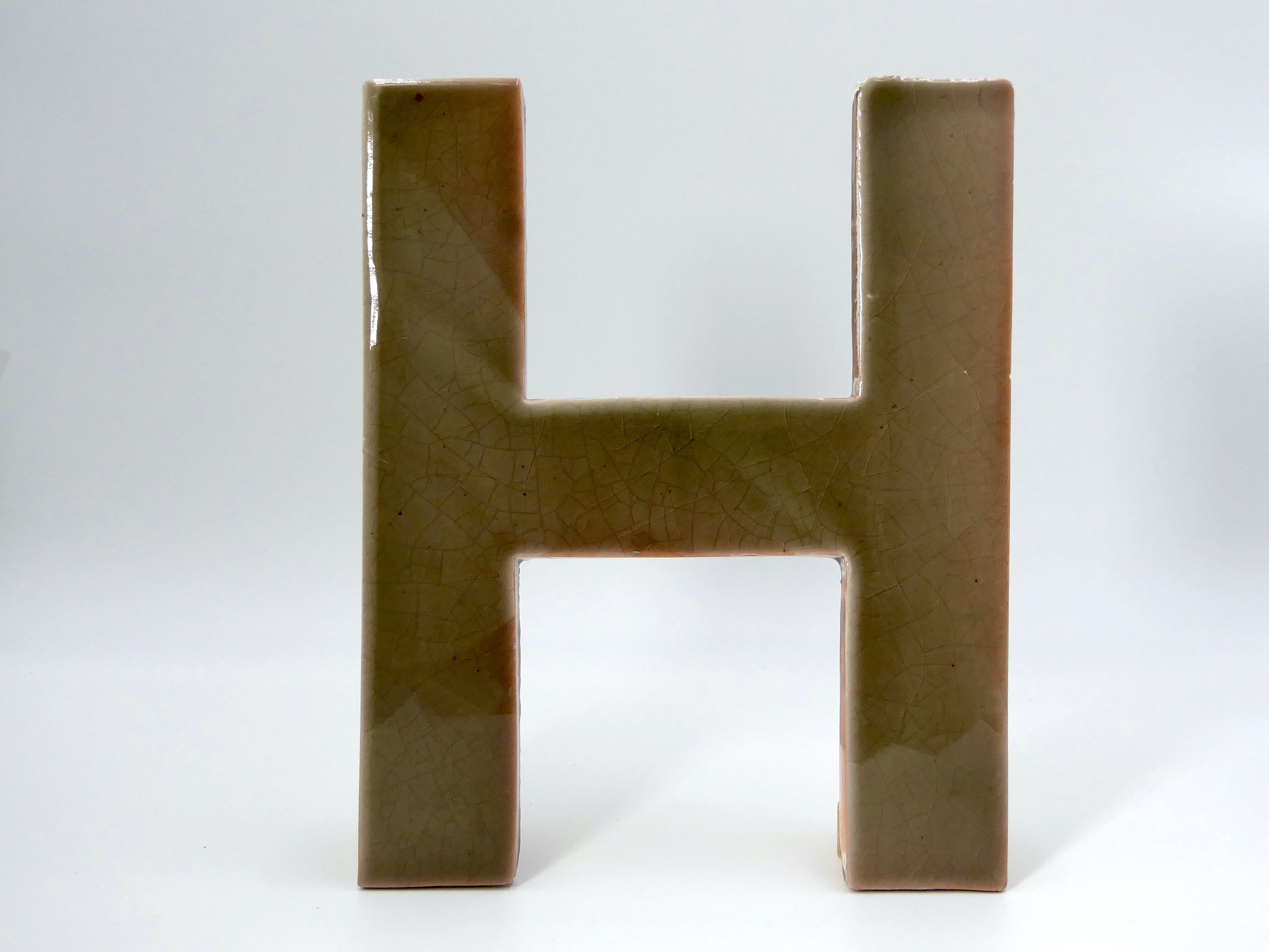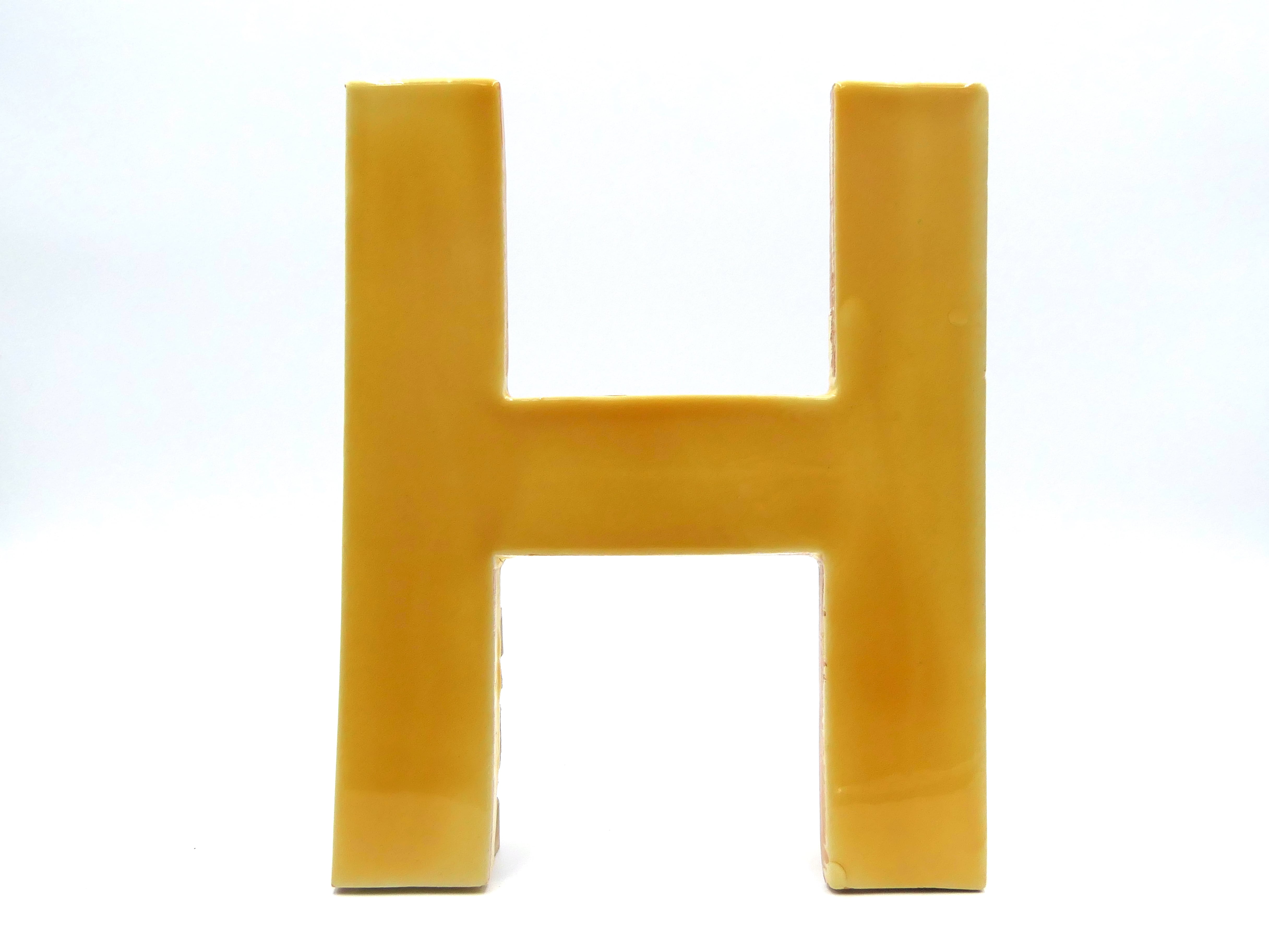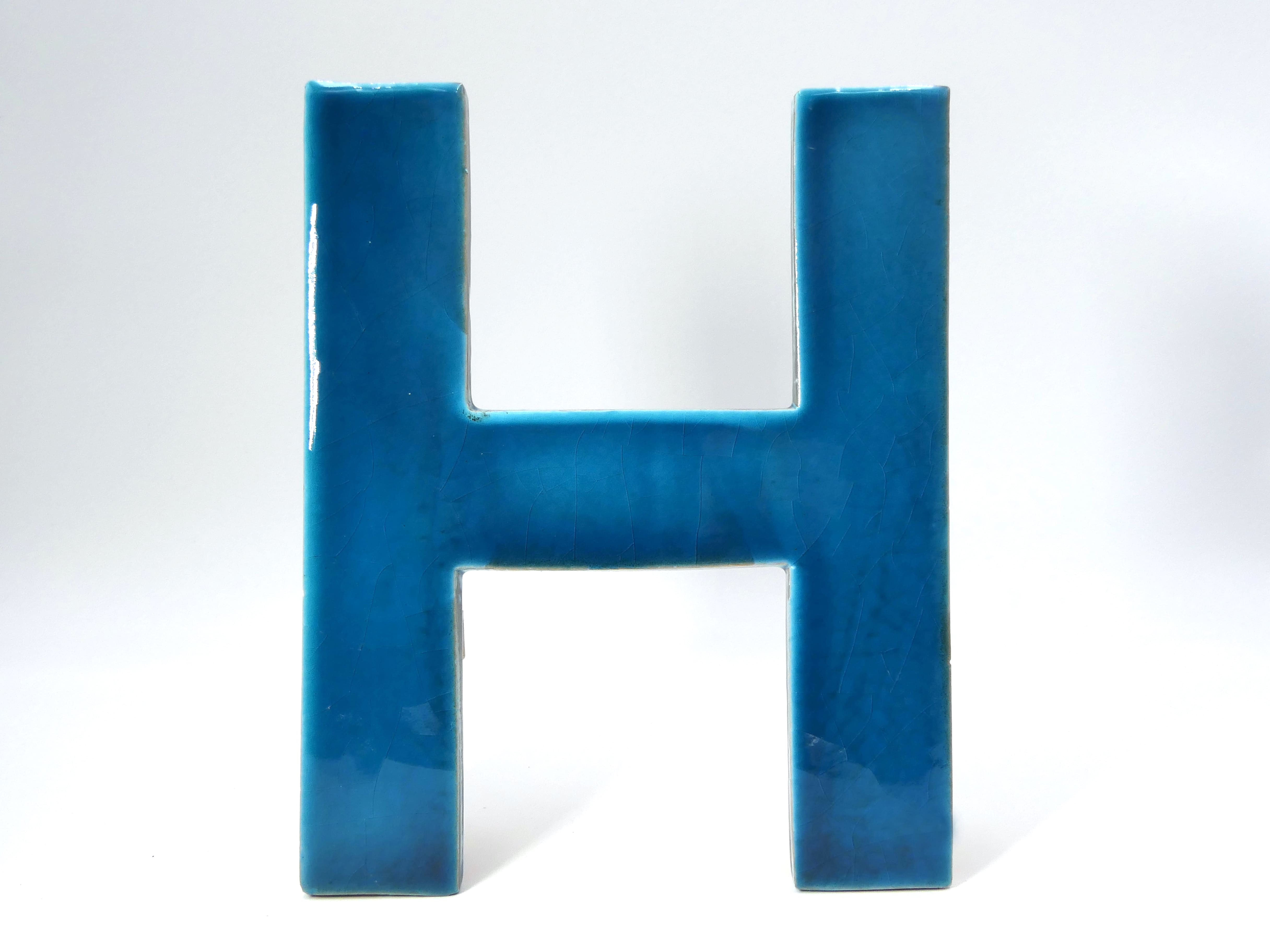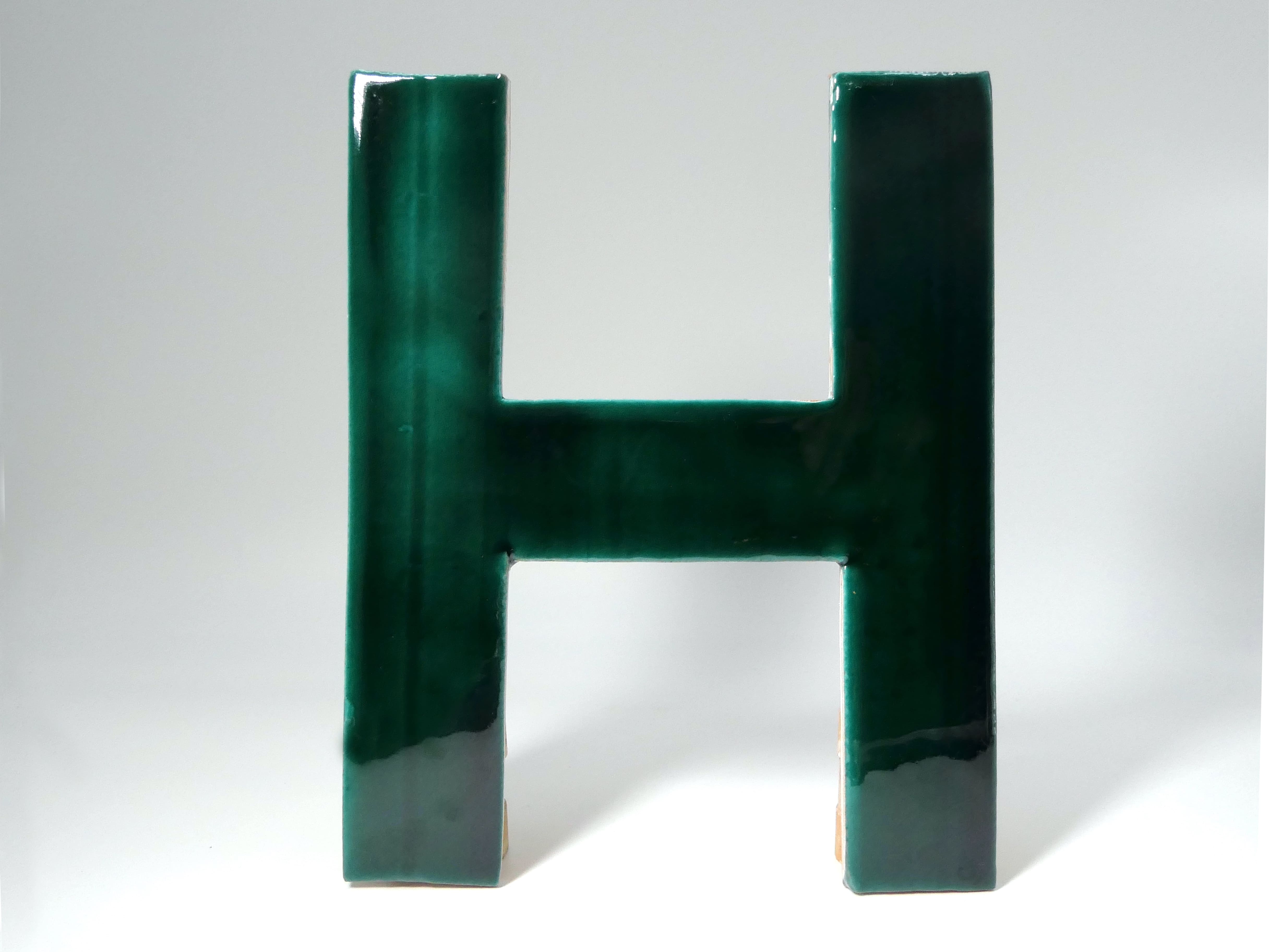 Azulejo de cerámica hecho y pintado a mano en forma de hache. Disponible en varios colores y totalmente personalizable.
