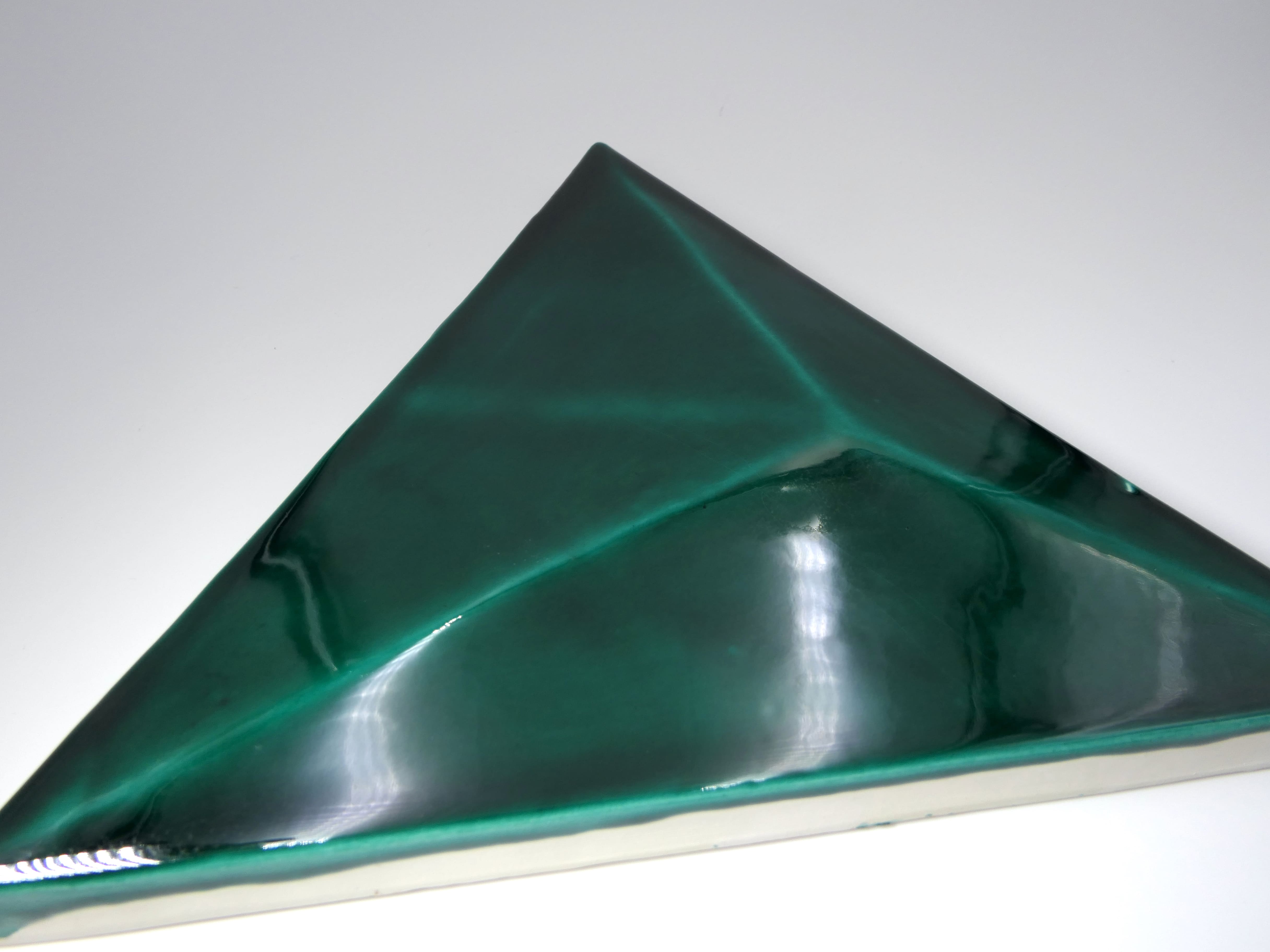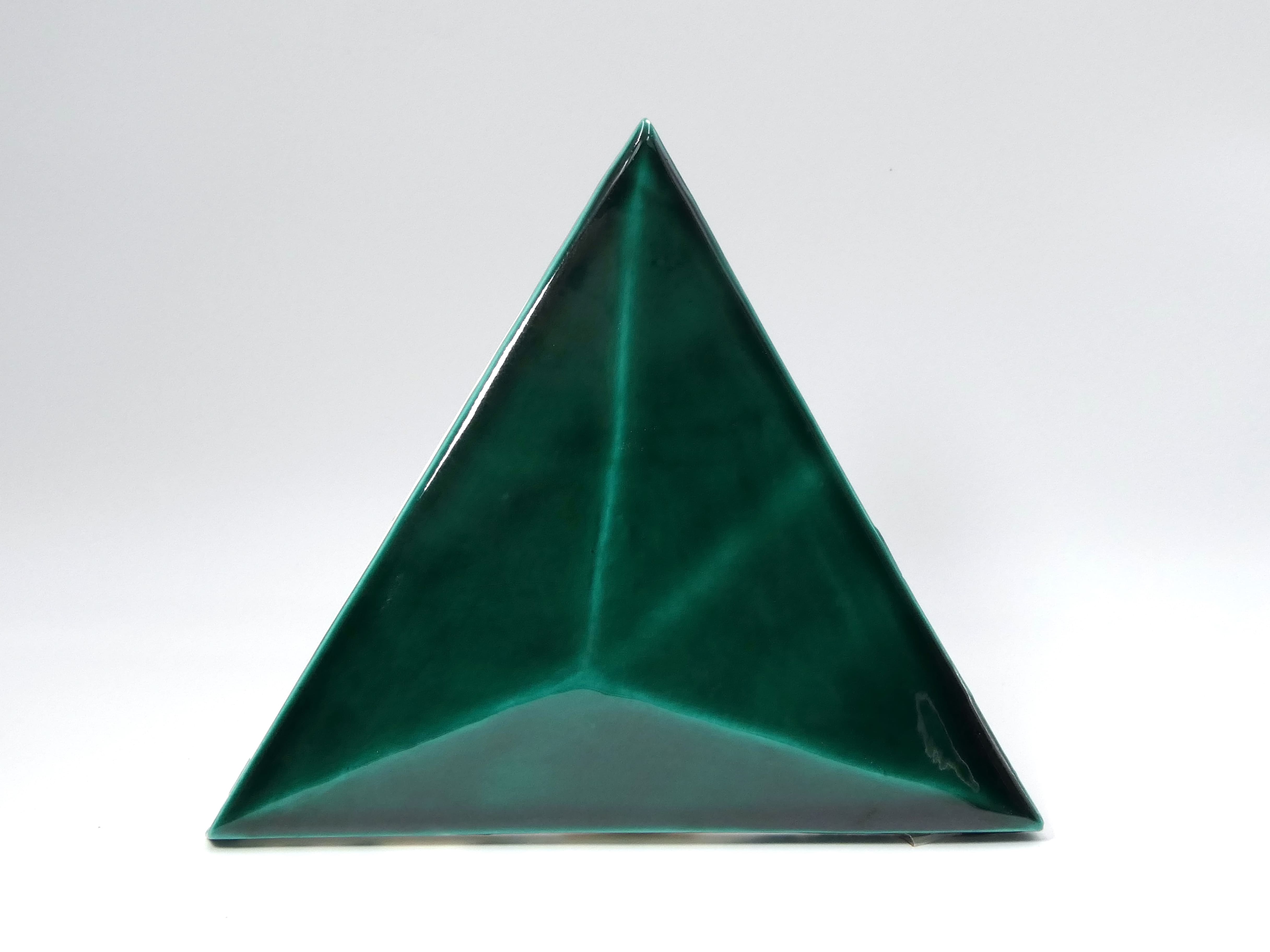 Azulejo de cerámica hecho y pintado a mano en forma de pirámide. Disponible en varios colores y totalmente personalizable.