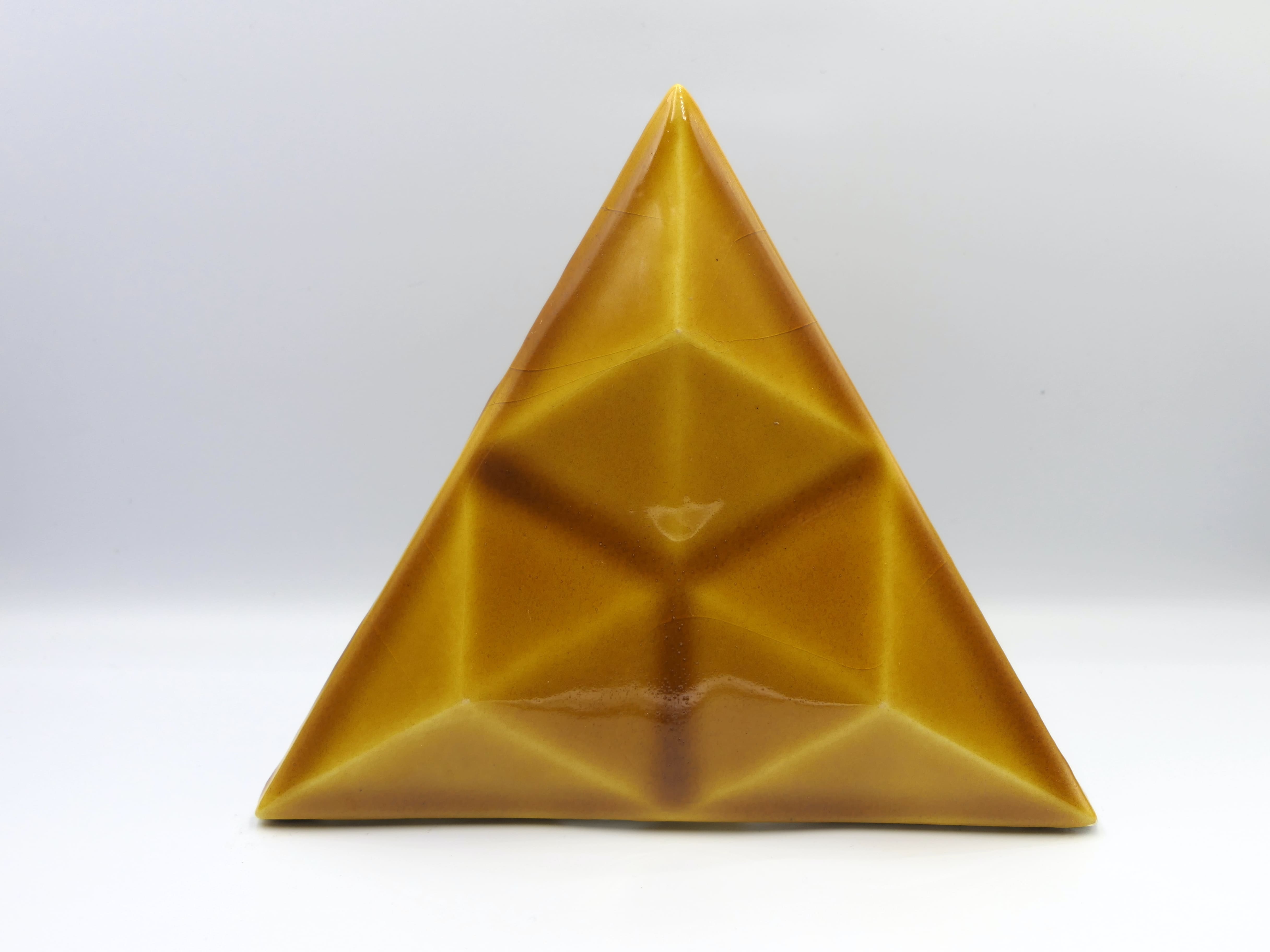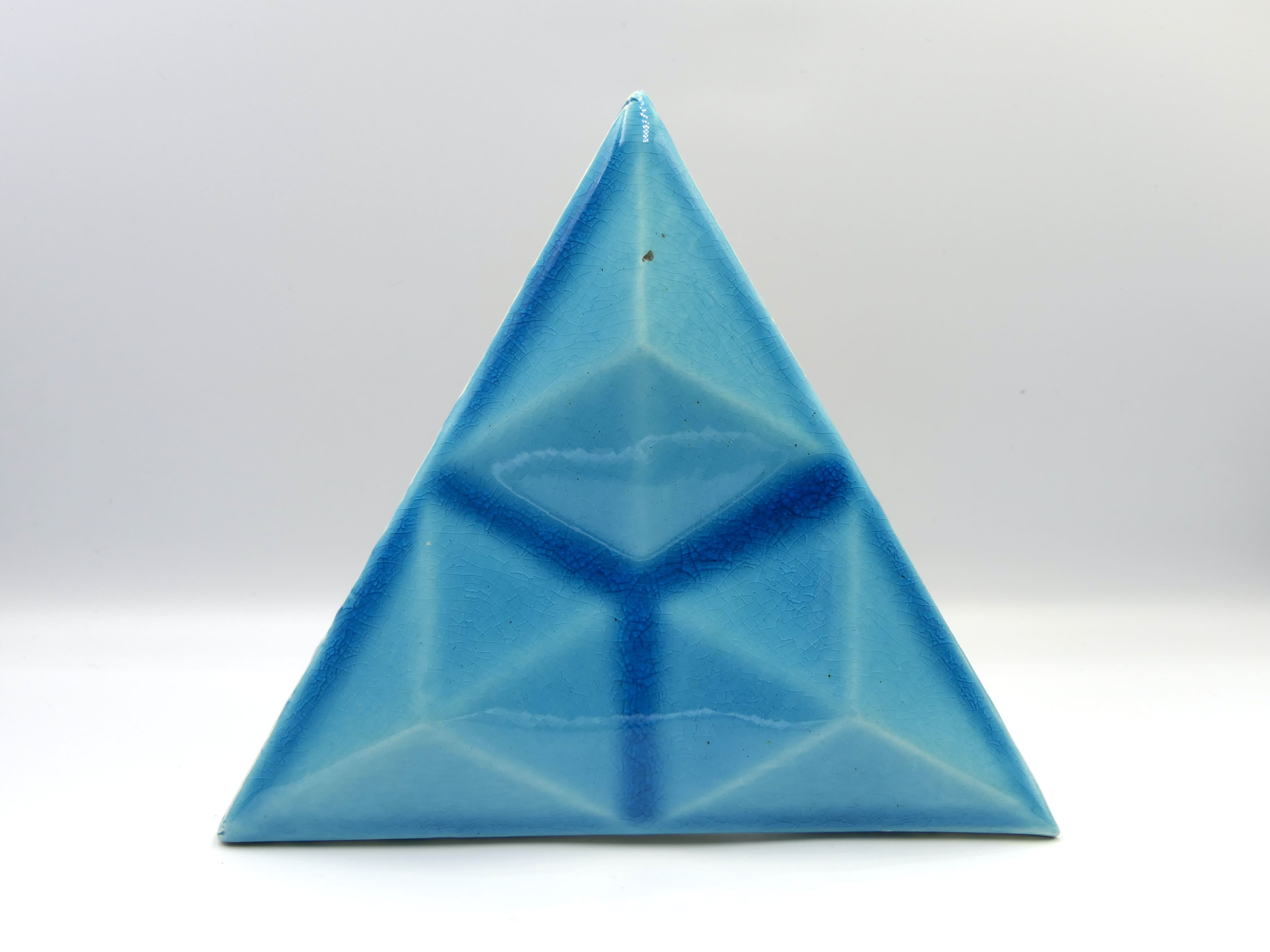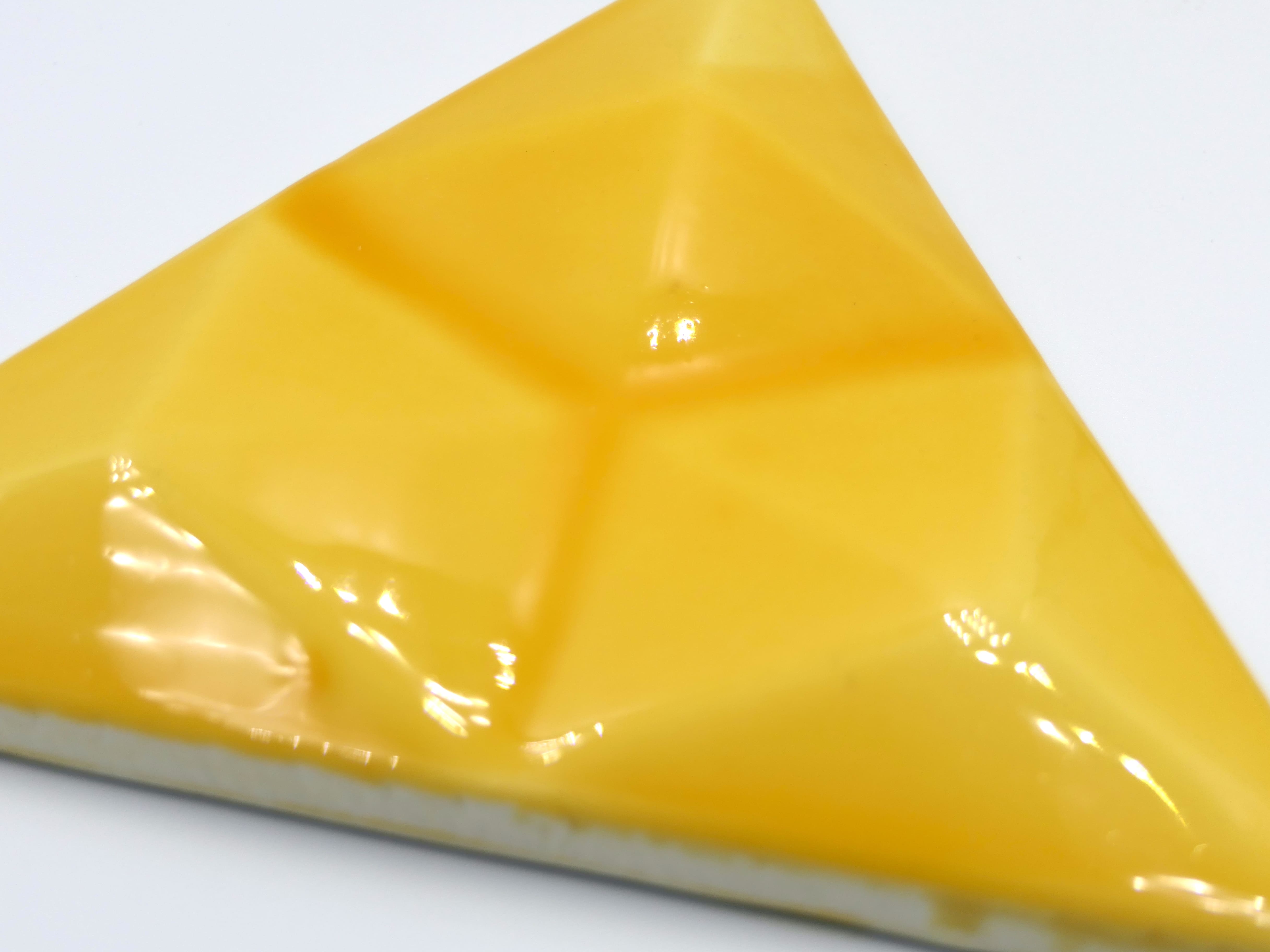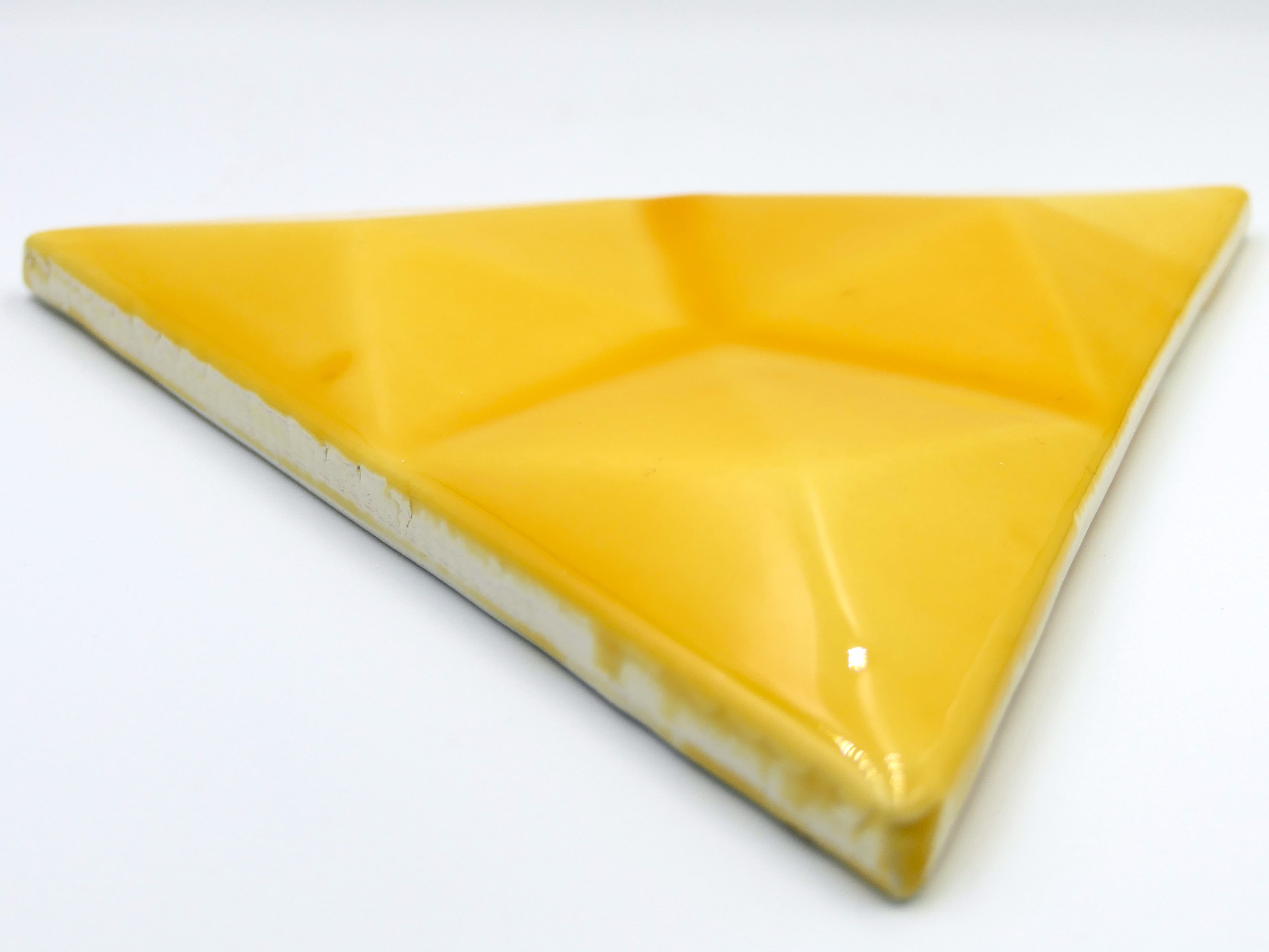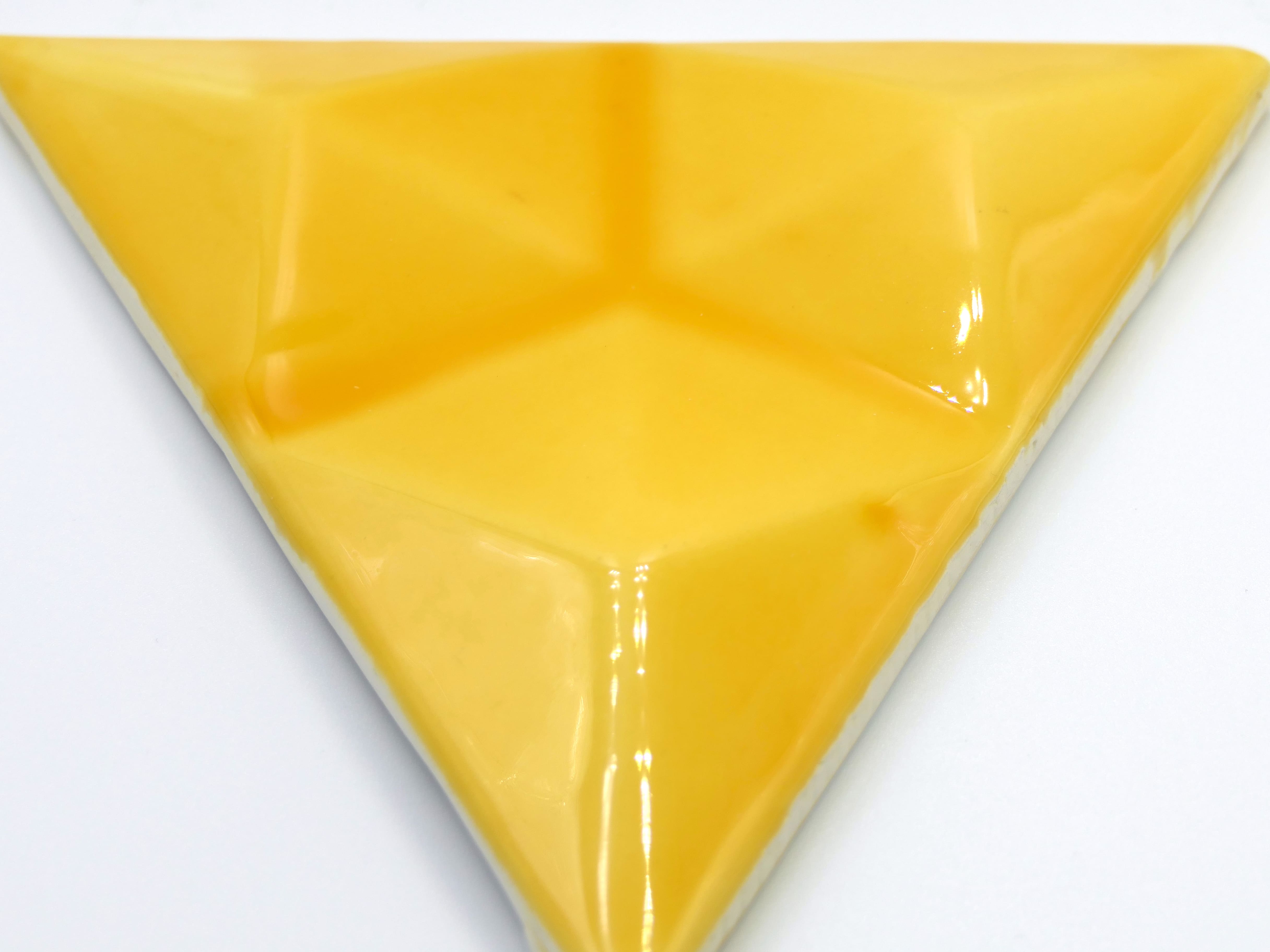 Azulejo de cerámica hecho y pintado a mano en forma de triangulo con diamante en relieve. Disponible en varios colores y totalmente personalizable.